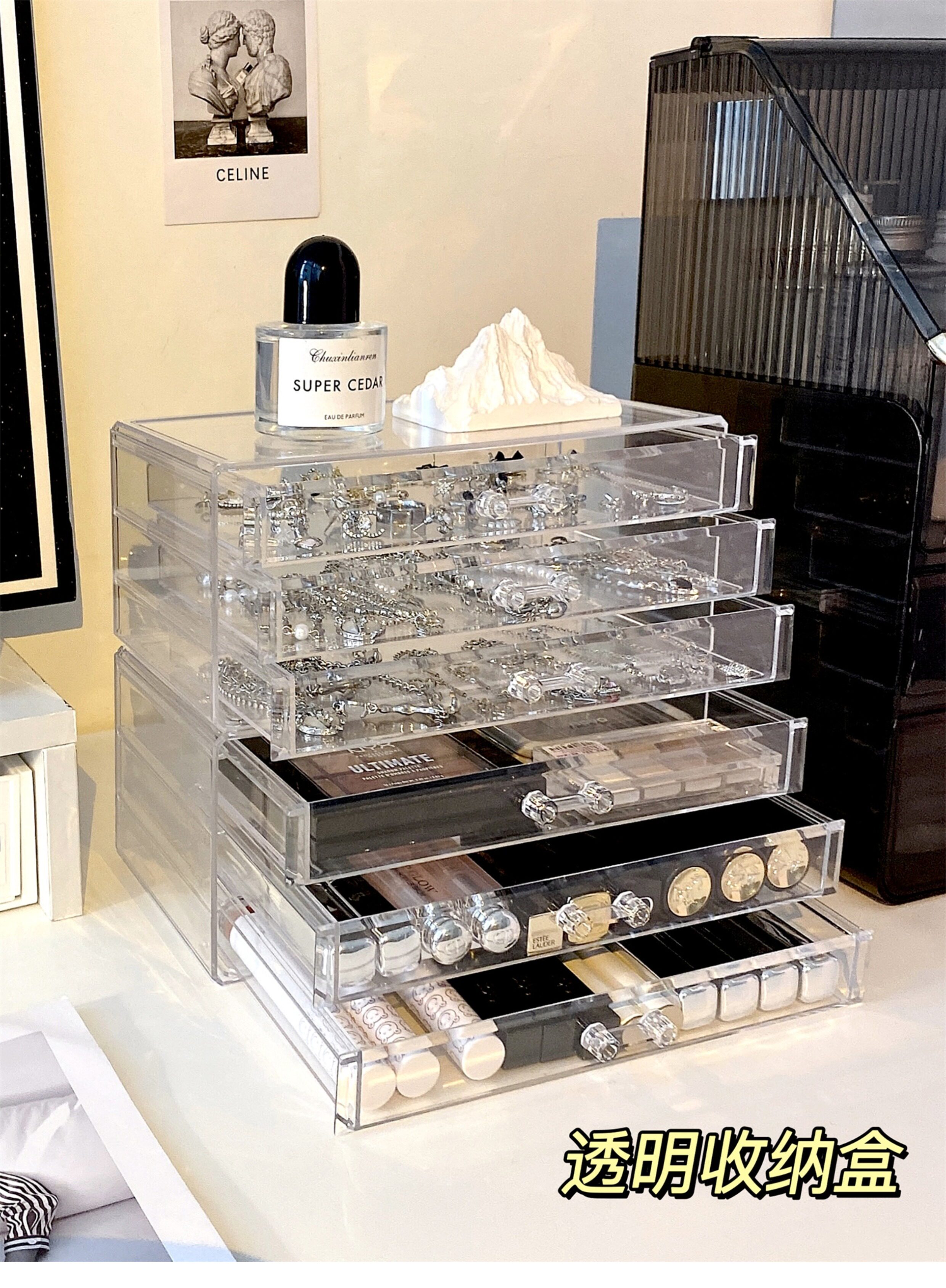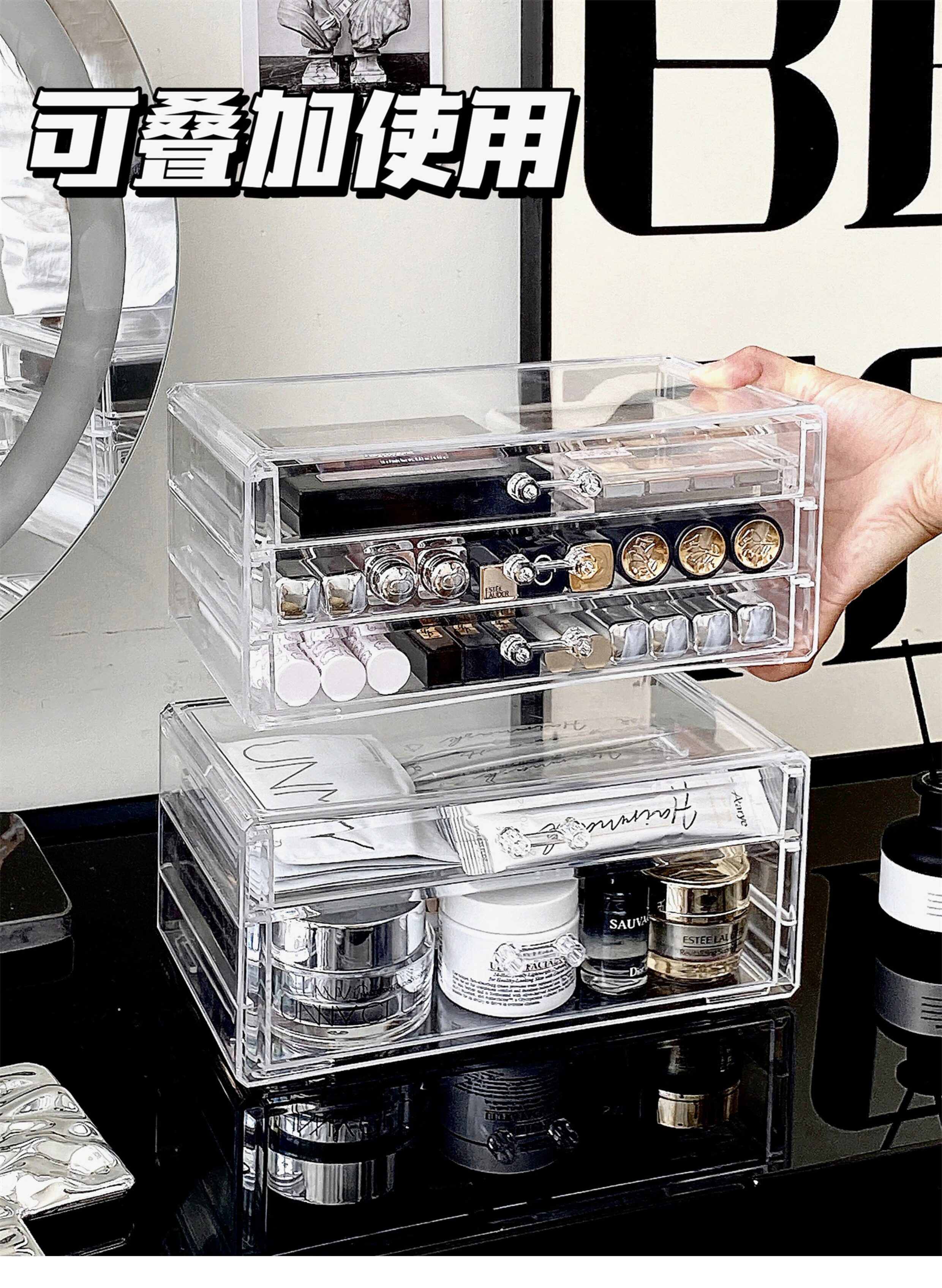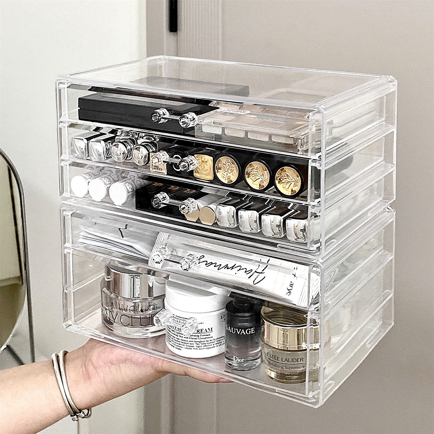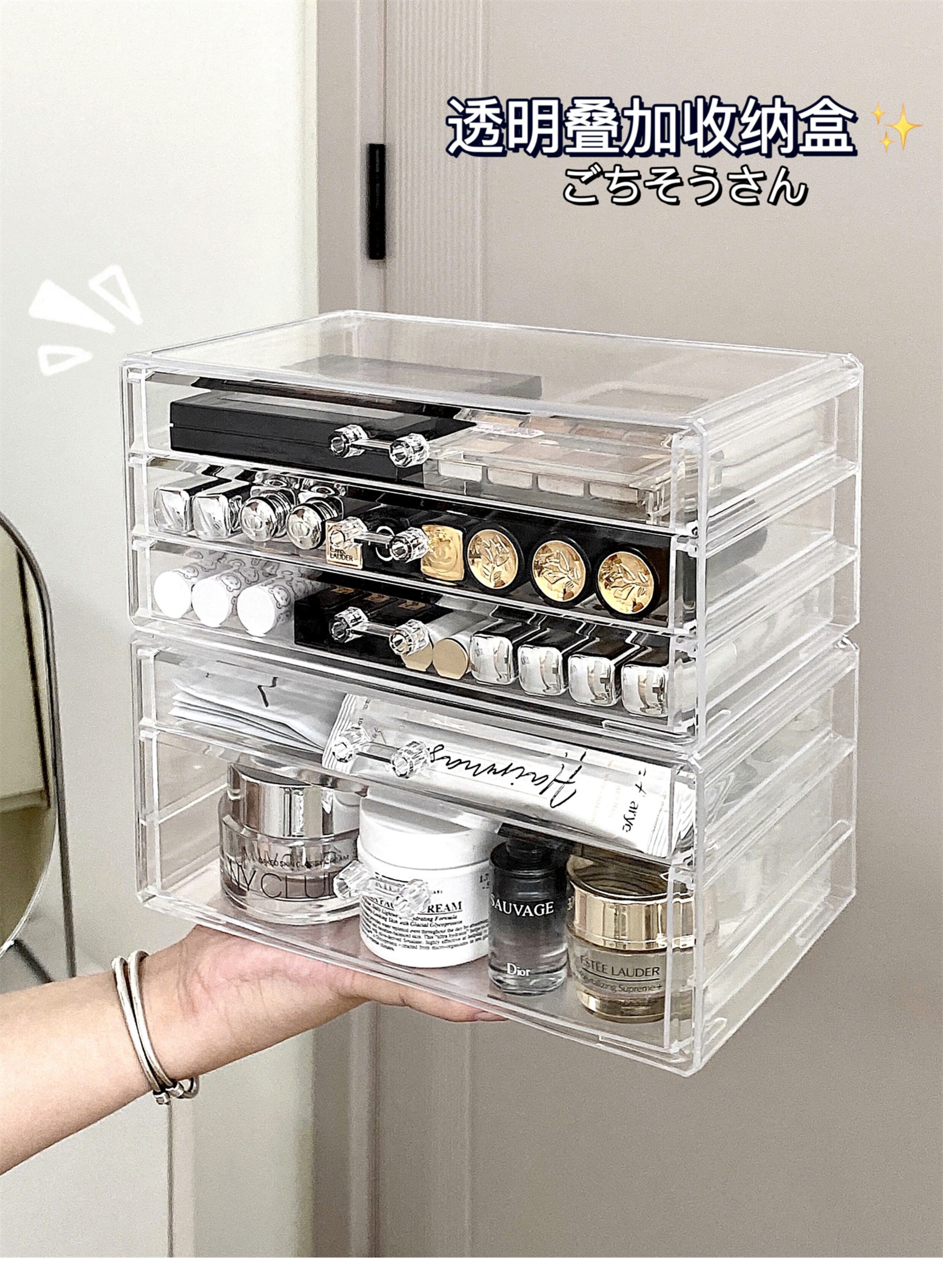 Настольная прозрачная акриловая коробка для хранения, косметическая тени для век, помада для ухода за кожей