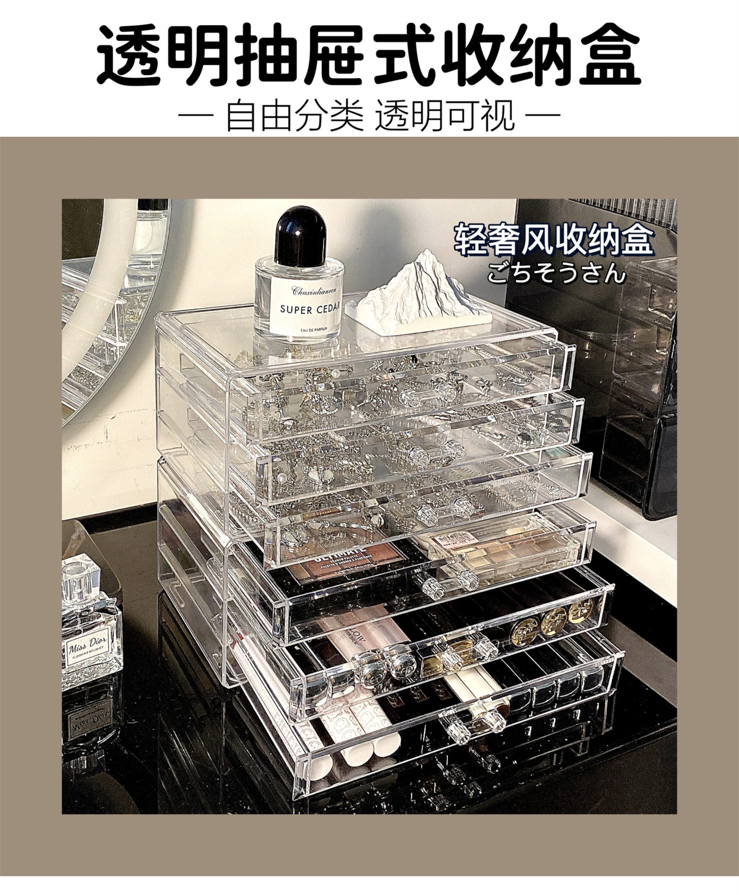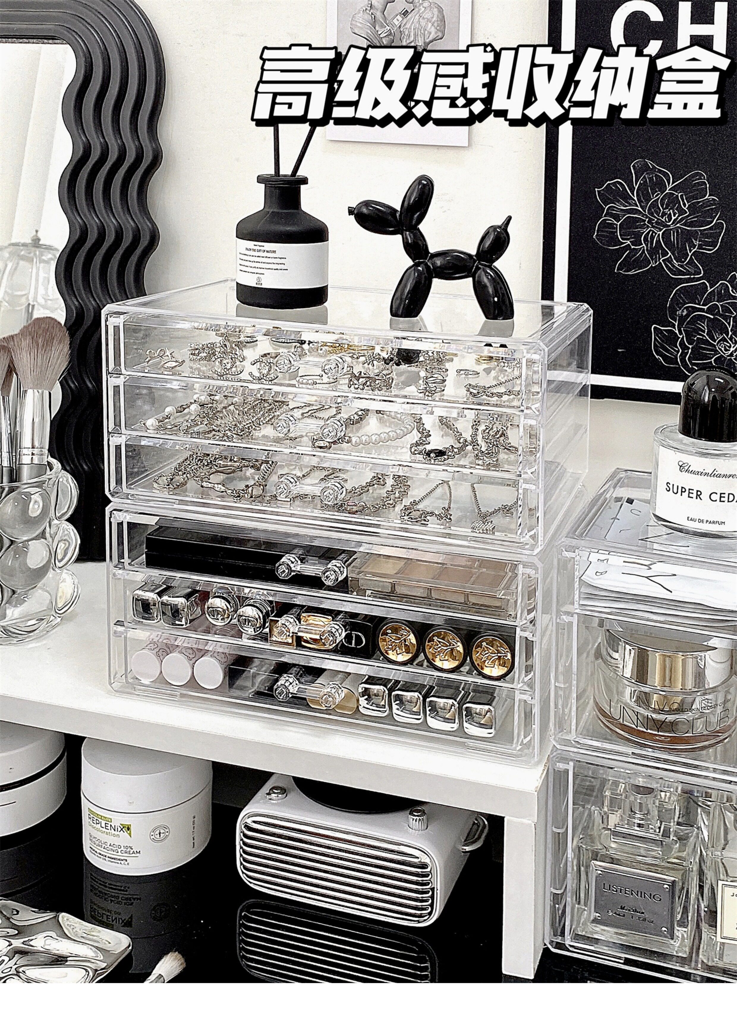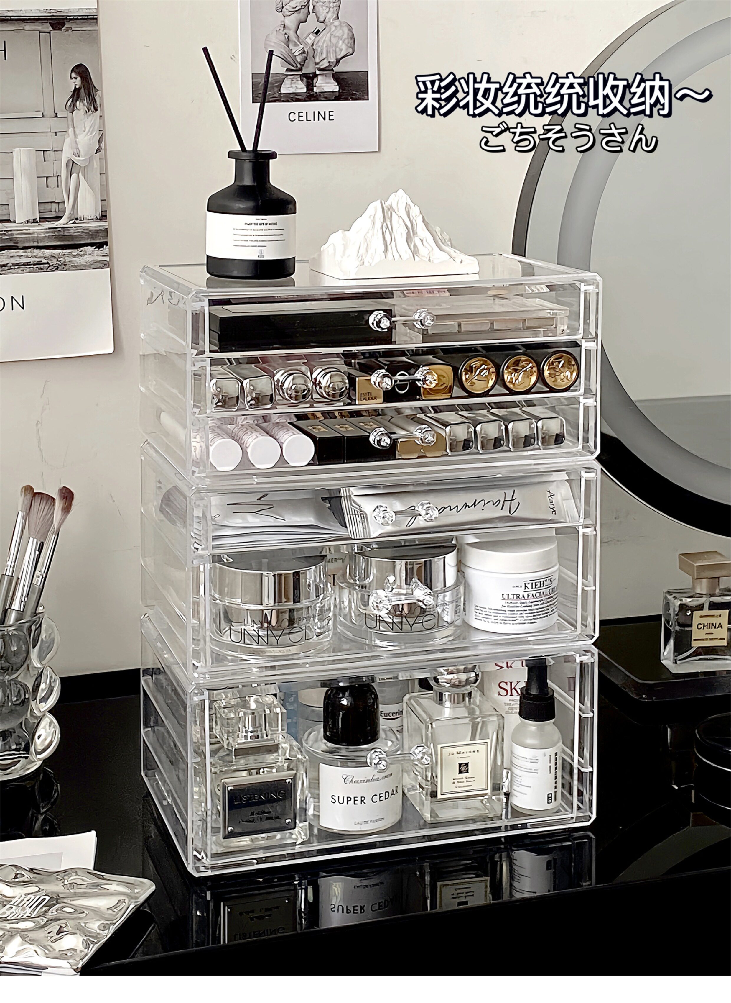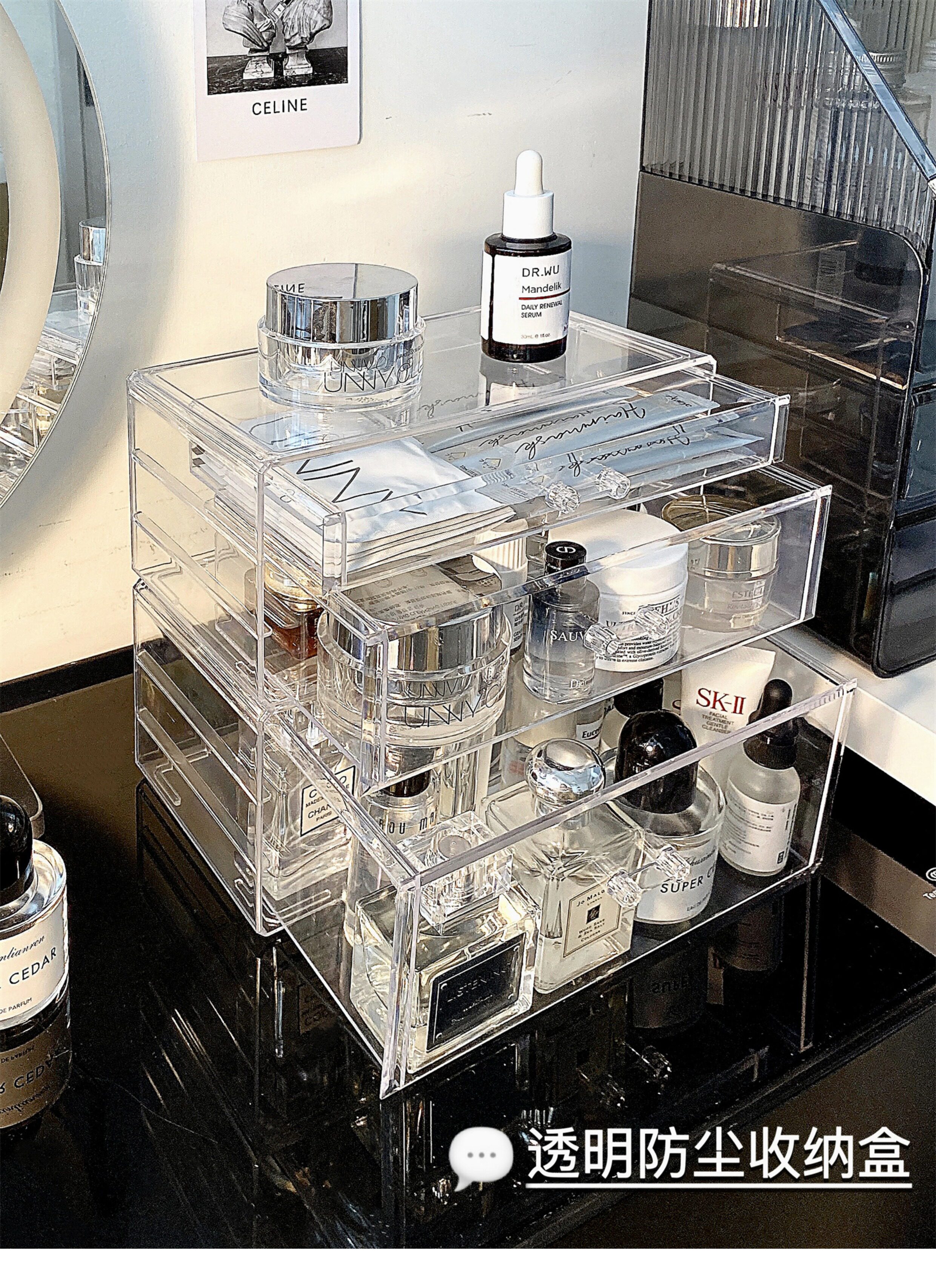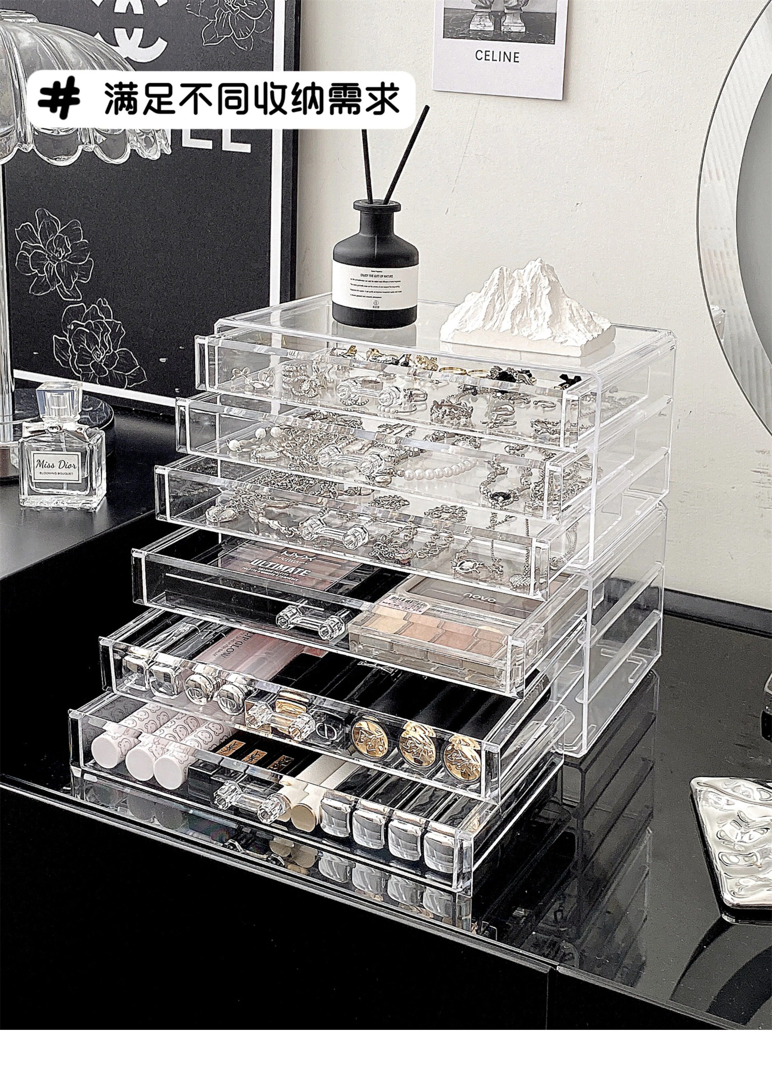 Настольная прозрачная акриловая коробка для хранения, косметическая тени для век, помада для ухода за кожей
