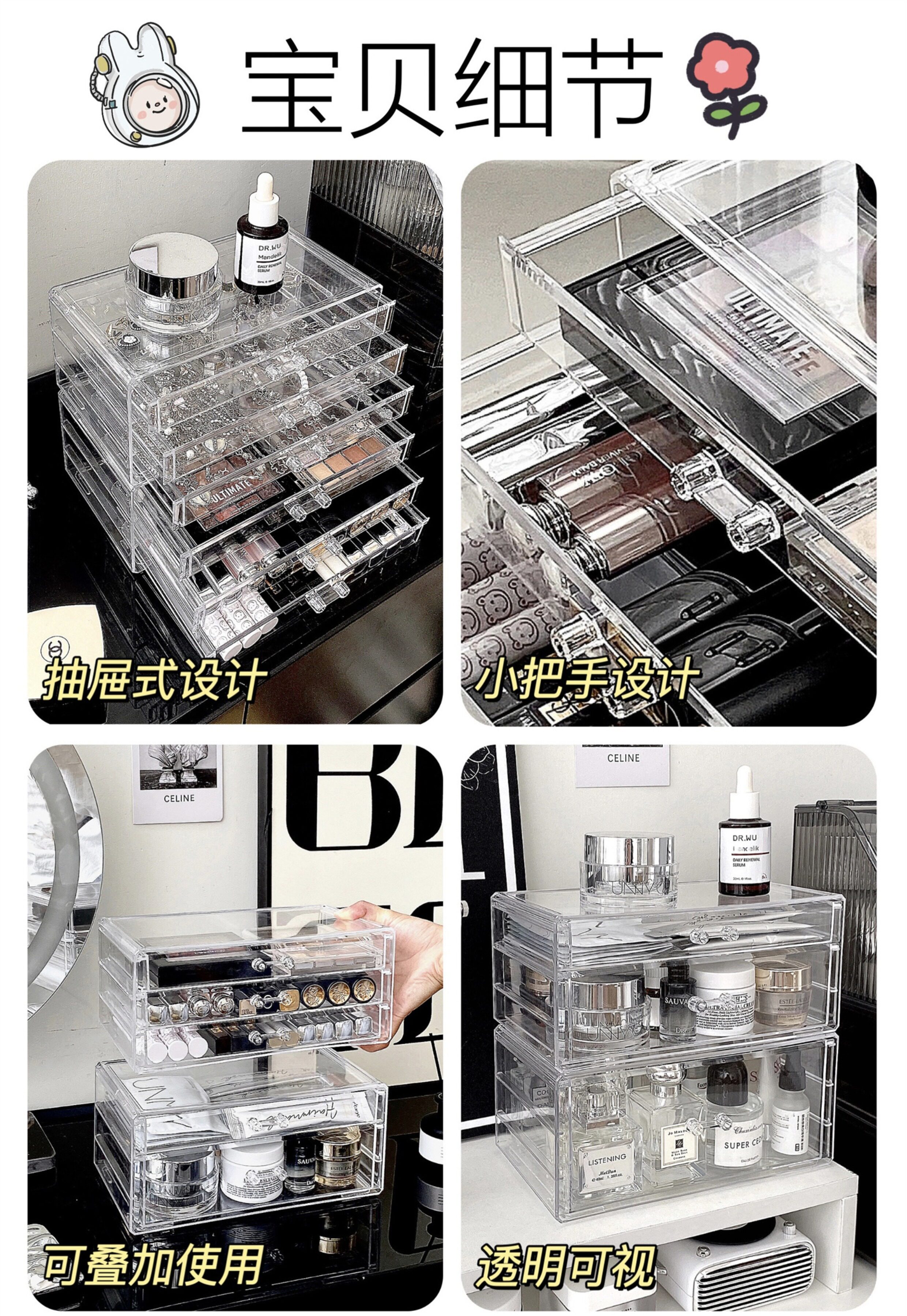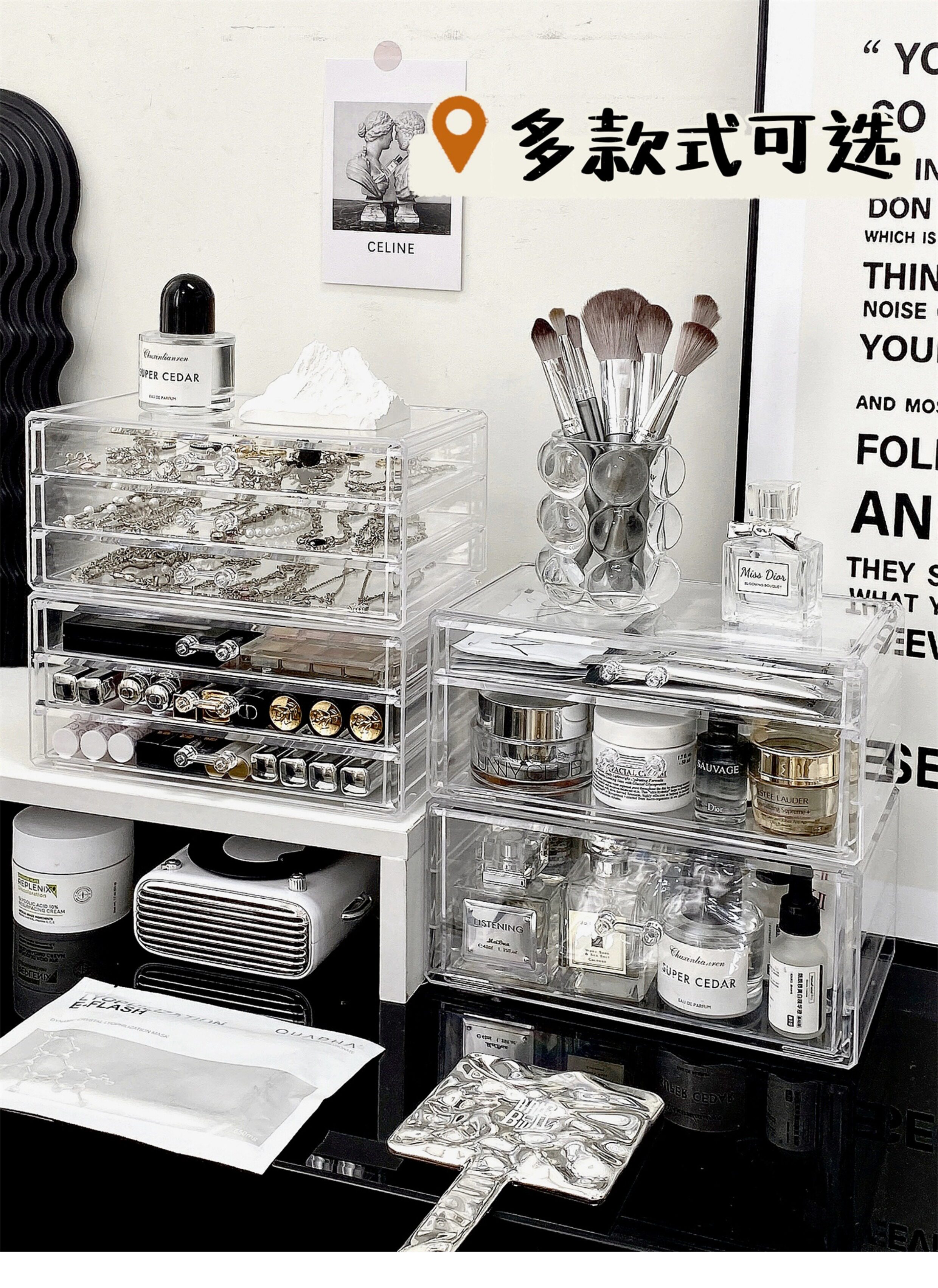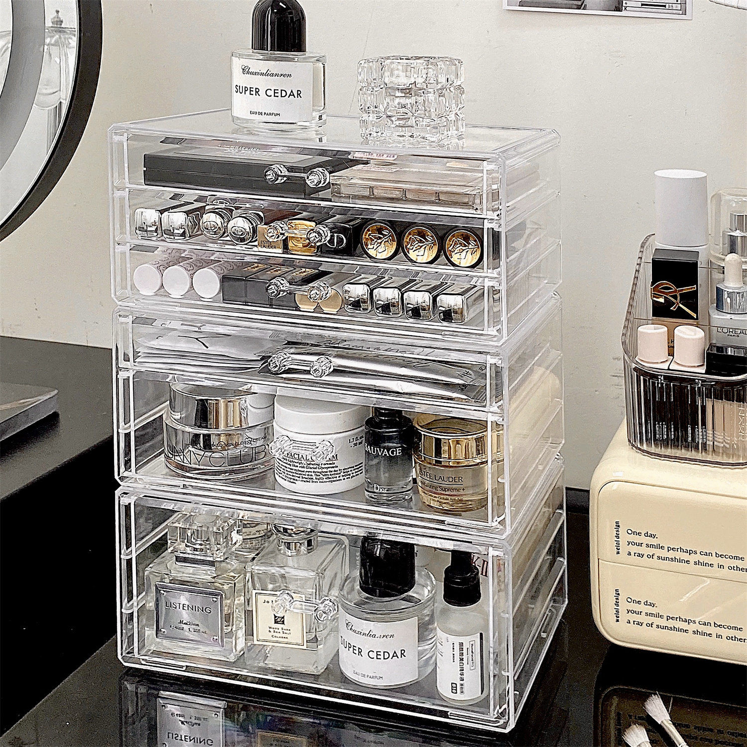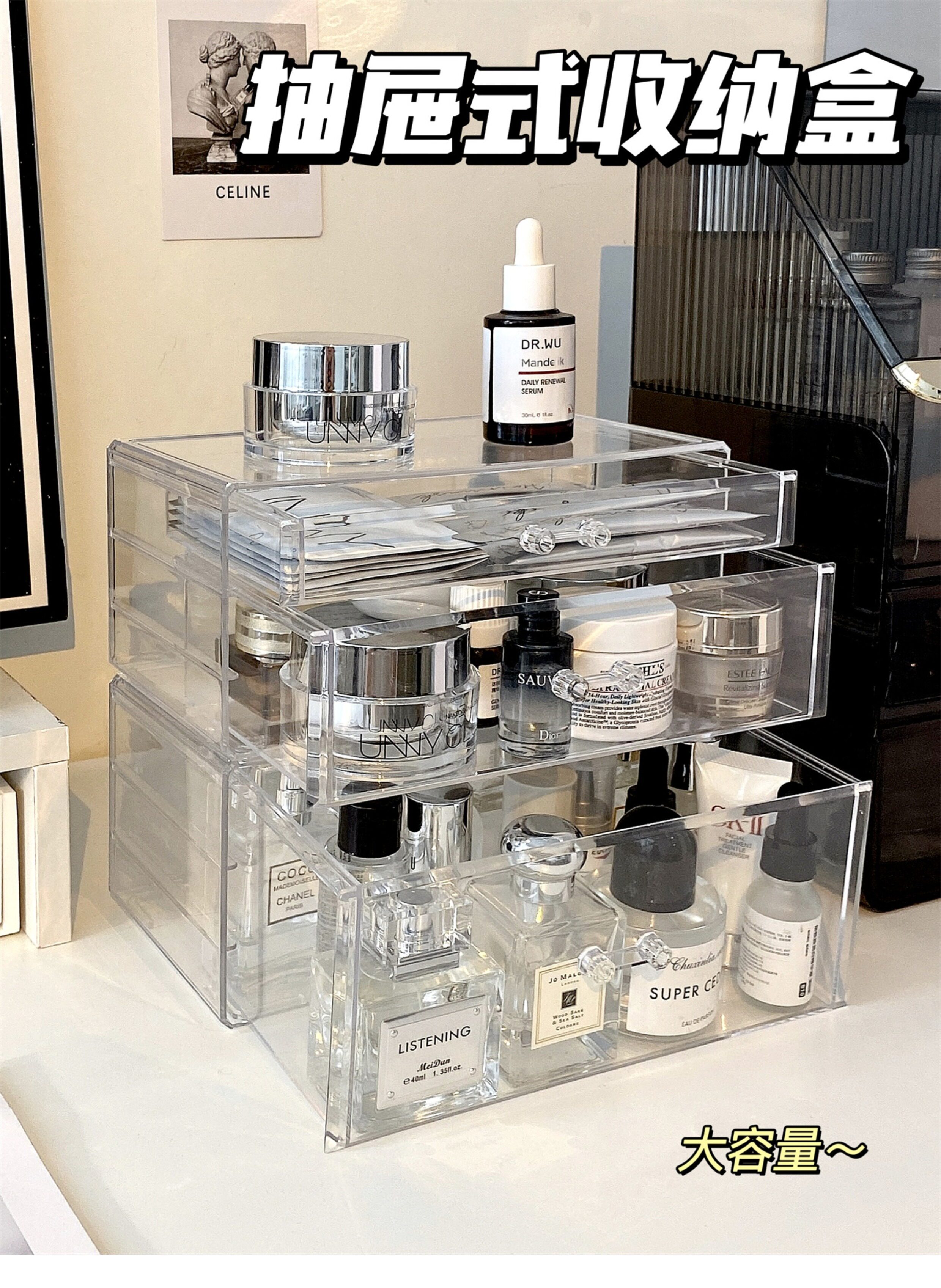 Настольная прозрачная акриловая коробка для хранения, косметическая тени для век, помада для ухода за кожей