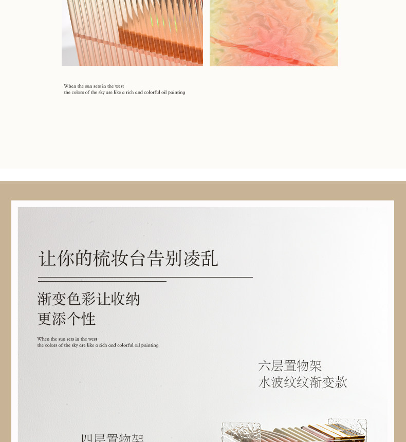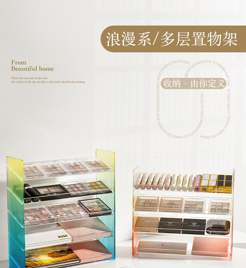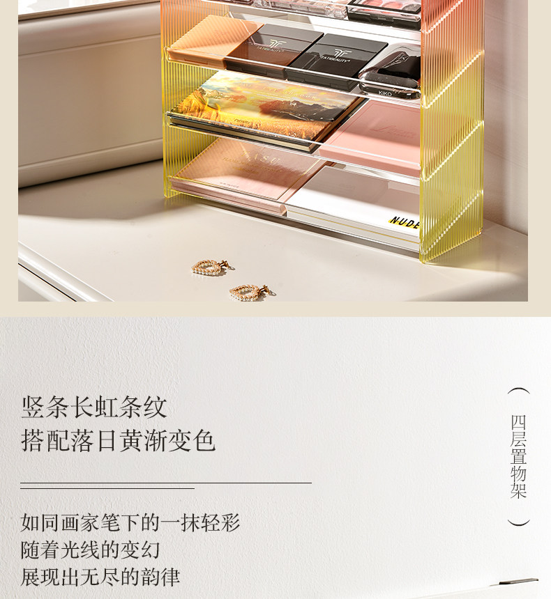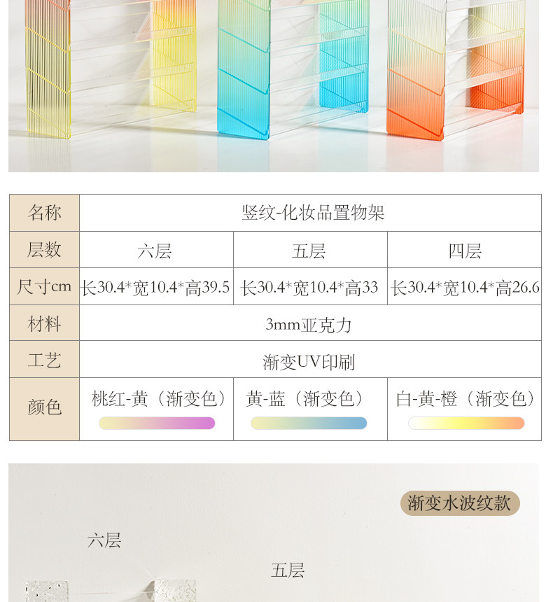 | Цвет: | Четвертый слой-стойка для макияжа (желто-оранжевый градиент), Четвертый слой-стойка для макияжа (розовый градиент), Пятый этаж-стойка для макияжа (оранжево-красный градиент), Пятый этаж-стойка для макияжа (желто-синий градиент), Шестой этаж-стойка для макияжа (желто-зеленый градиент), Стеллаж для макияжа на шестом этаже (розовый градиент) |