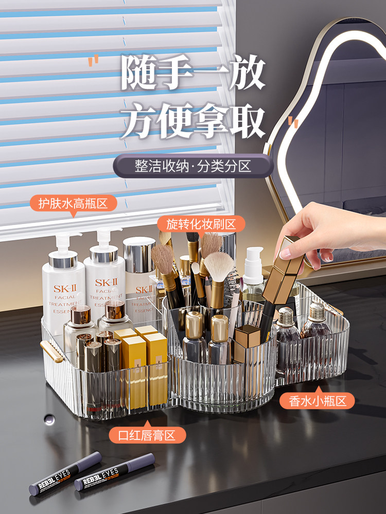 Настольная косметическая акриловая коробка для хранения, прозрачная пластиковая помада, кисть
