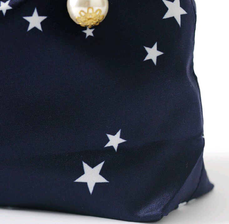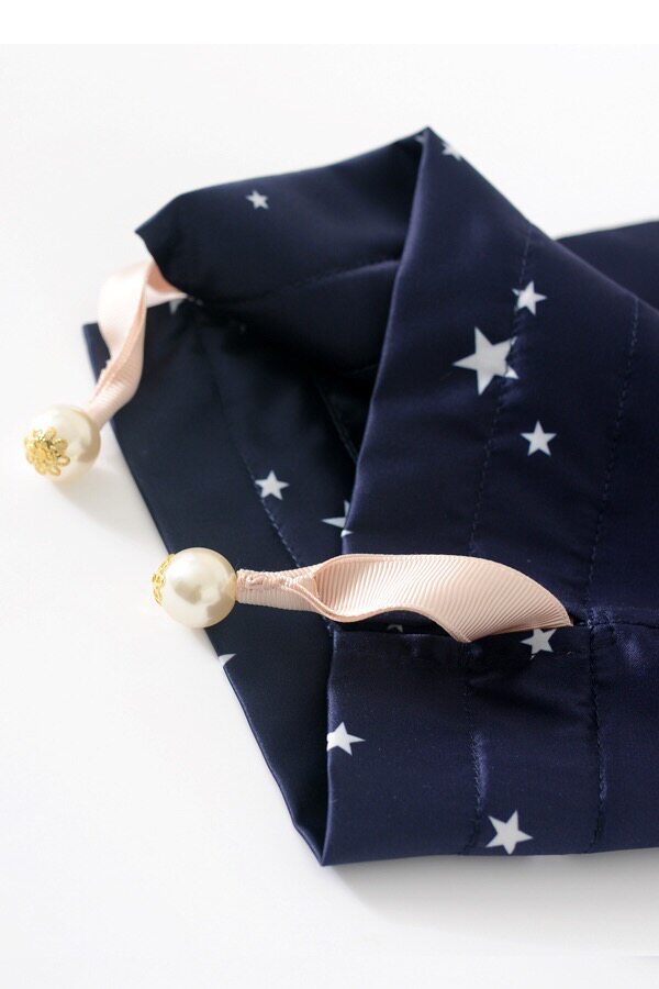 Поверхностная струйная печать, ощущение шелковой руки, гладкий шелковый цвет, нарезанный внутри, веревочный чертеж, с жемчужной, очень элегантной моделью темперамента.Подходит для перемещения нижнего белья или в качестве косметической сумки и хранения мусора.