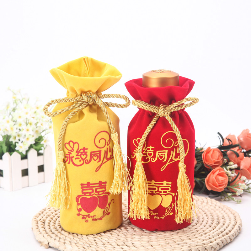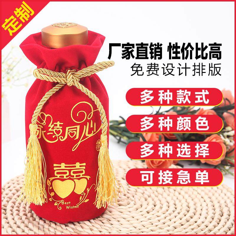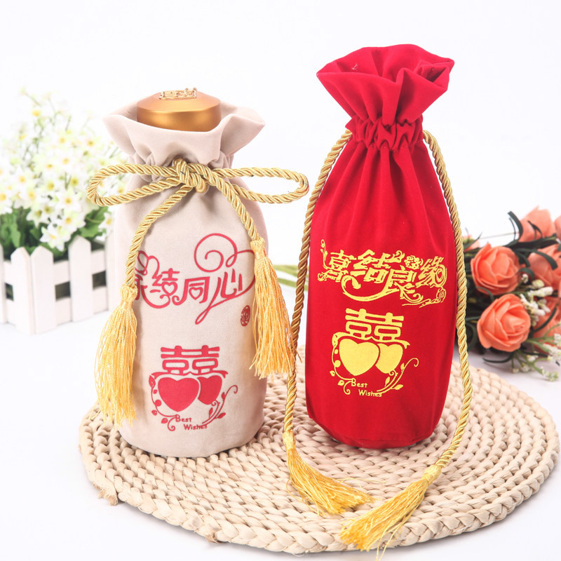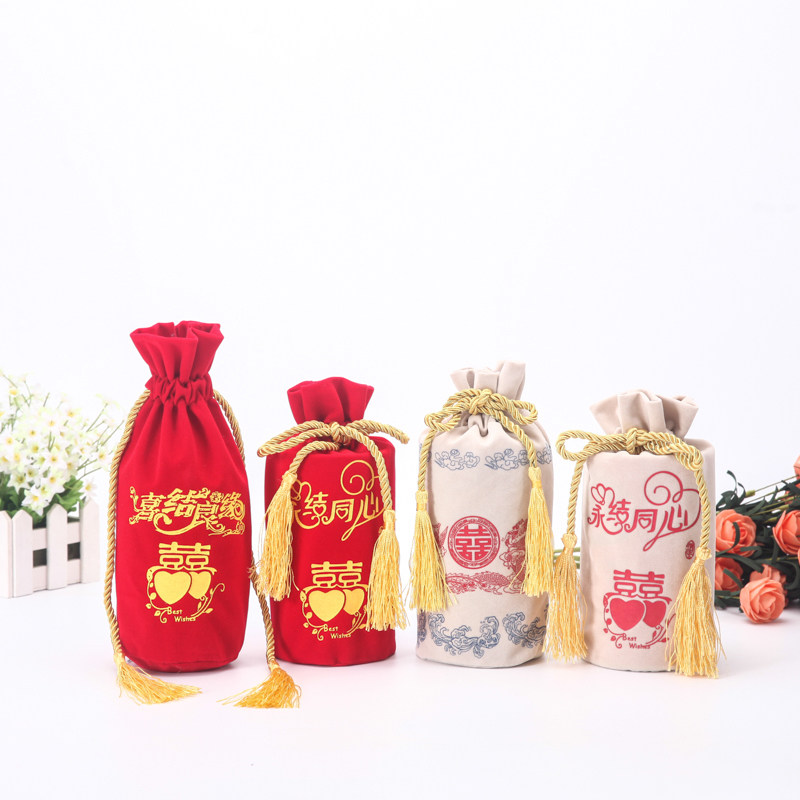 Индивидуальная красная свадебная банкетная сумка для вина высокая подарочная сумка для перекачки веревки бутылка бутылка пухлая ткань букет белый винный мешок можно настроить в складе