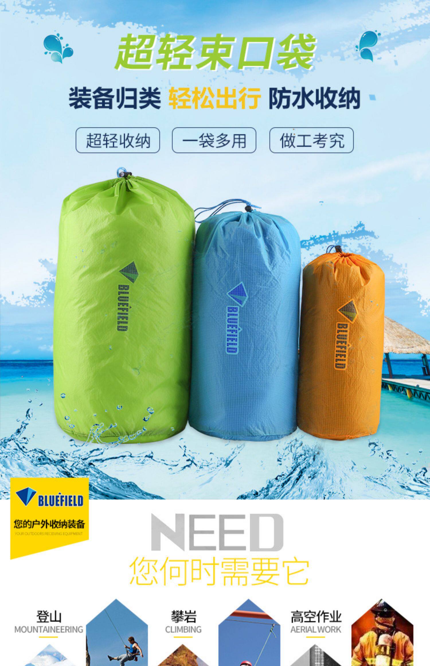 Сумка для хранения для путешествий, пуховик, спальный мешок, водонепроницаемый мешочек, на шнурках