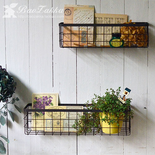 Настоящие продукты, прямоугольная корзина из кованого железа в журнальном стиле, настенная корзина для хранения, место для хранения огорода и сада.