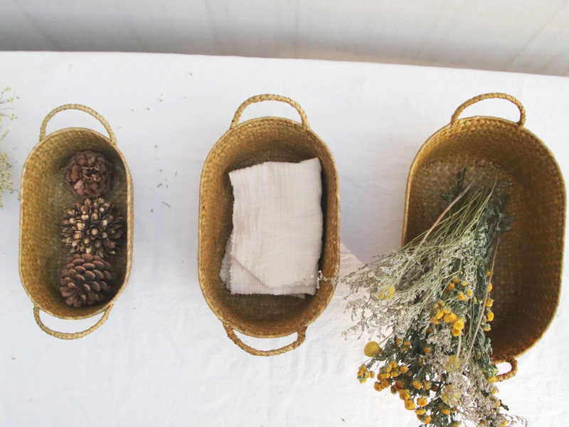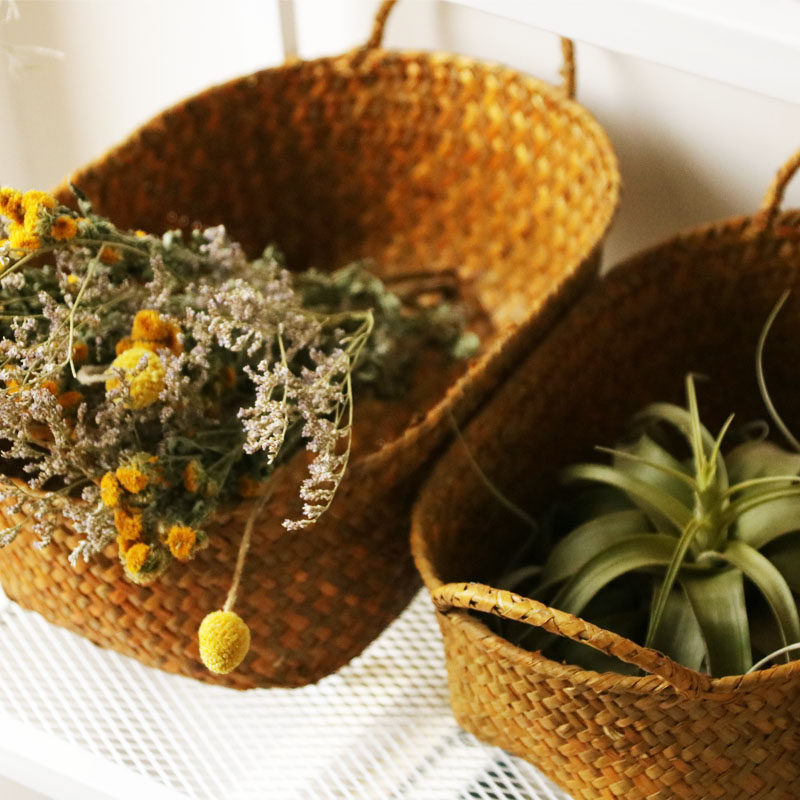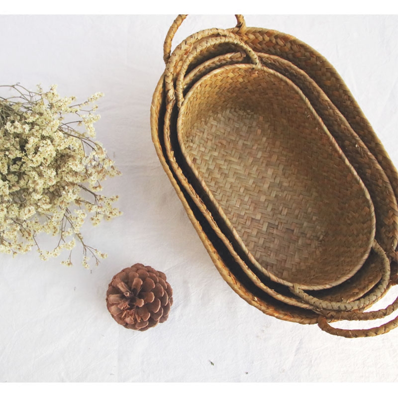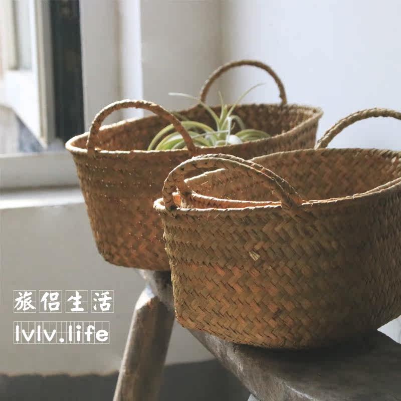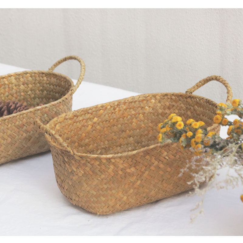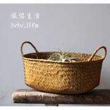 Японская пасторальная корзина для хранения с двумя ушками из морских водорослей ручной работы, небольшая корзина для хранения фруктов и овощей, небольшая корзина для хранения вещей