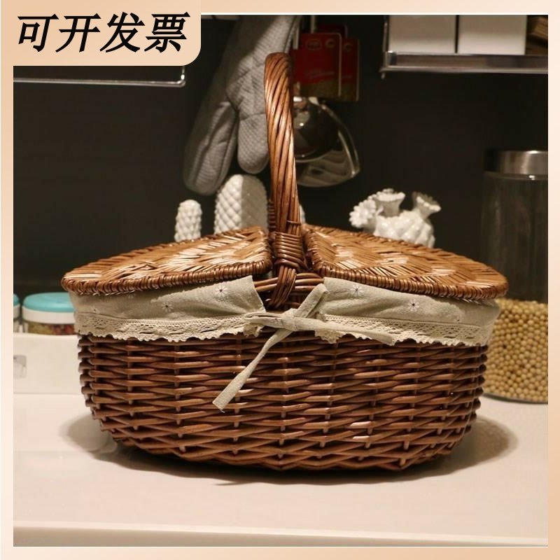 Сельская ланзи овощная корзина Woven Wear -устойчивая бамбуковая корзина Симпатичная уборка с ротантом и закуски с корзиной для корзины в северной Европе в северной Европе