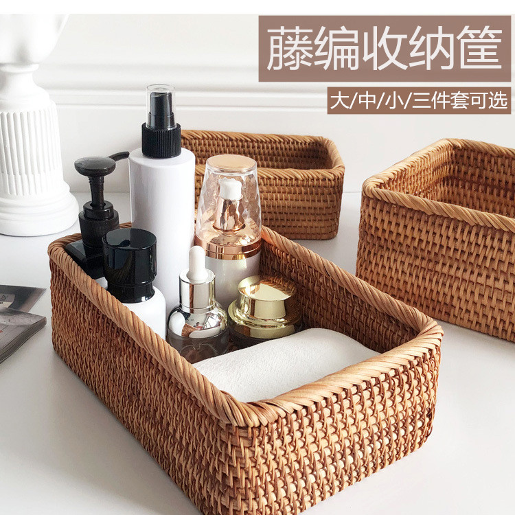 Японская изысканная настольная большая плетеная корзина для хранения, DIY