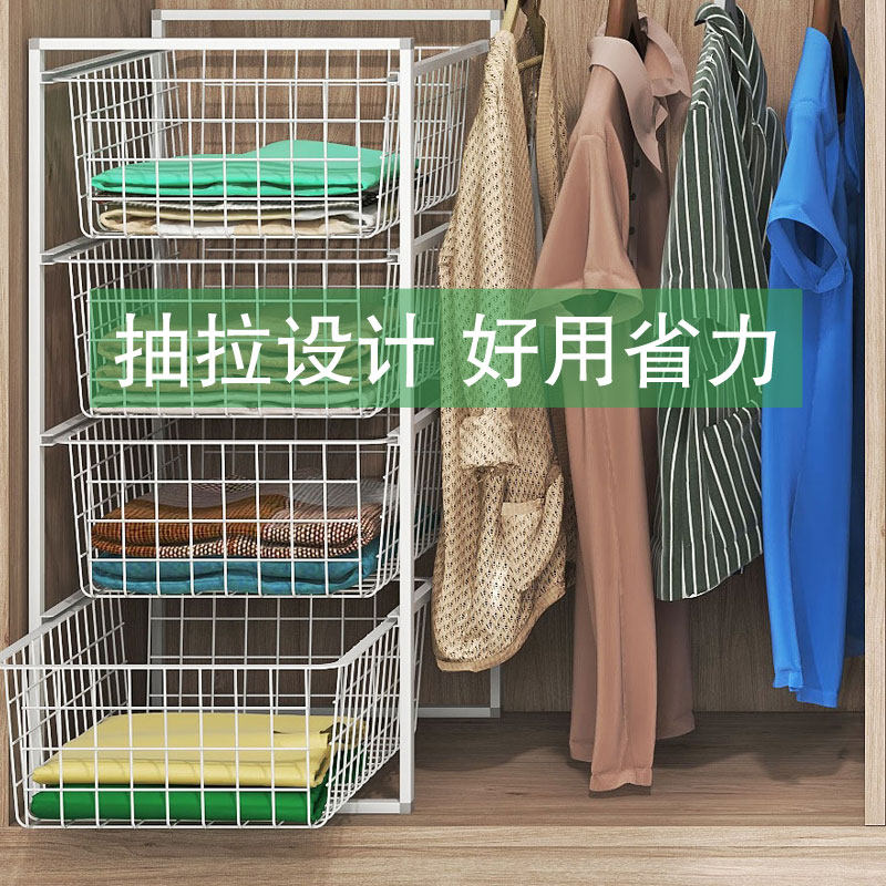 Гардеробная корзина для хранения, многоуровневая стойка для хранения, корзина для хранения выдвижного типа, перегородка шкафа, артефакт использования пространства шкафа