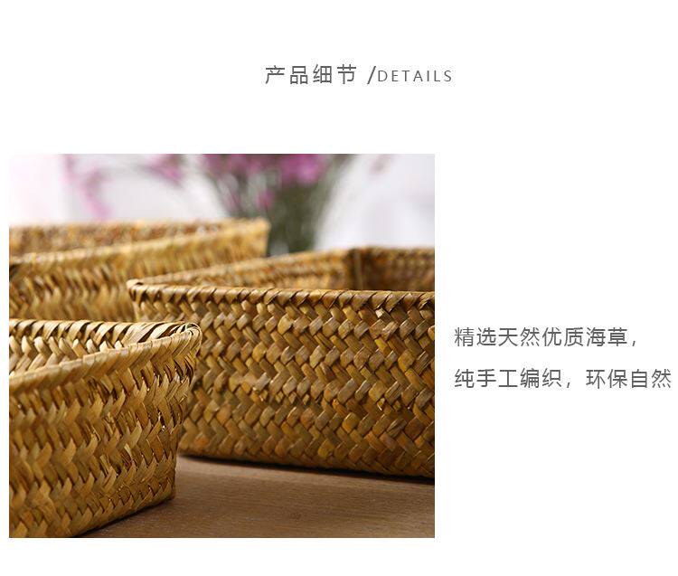 Настольная корзина для хранения из натуральной бамбуковой соломы, небольшой органайзер, бытовой квадратный длинный набор из нескольких предметов