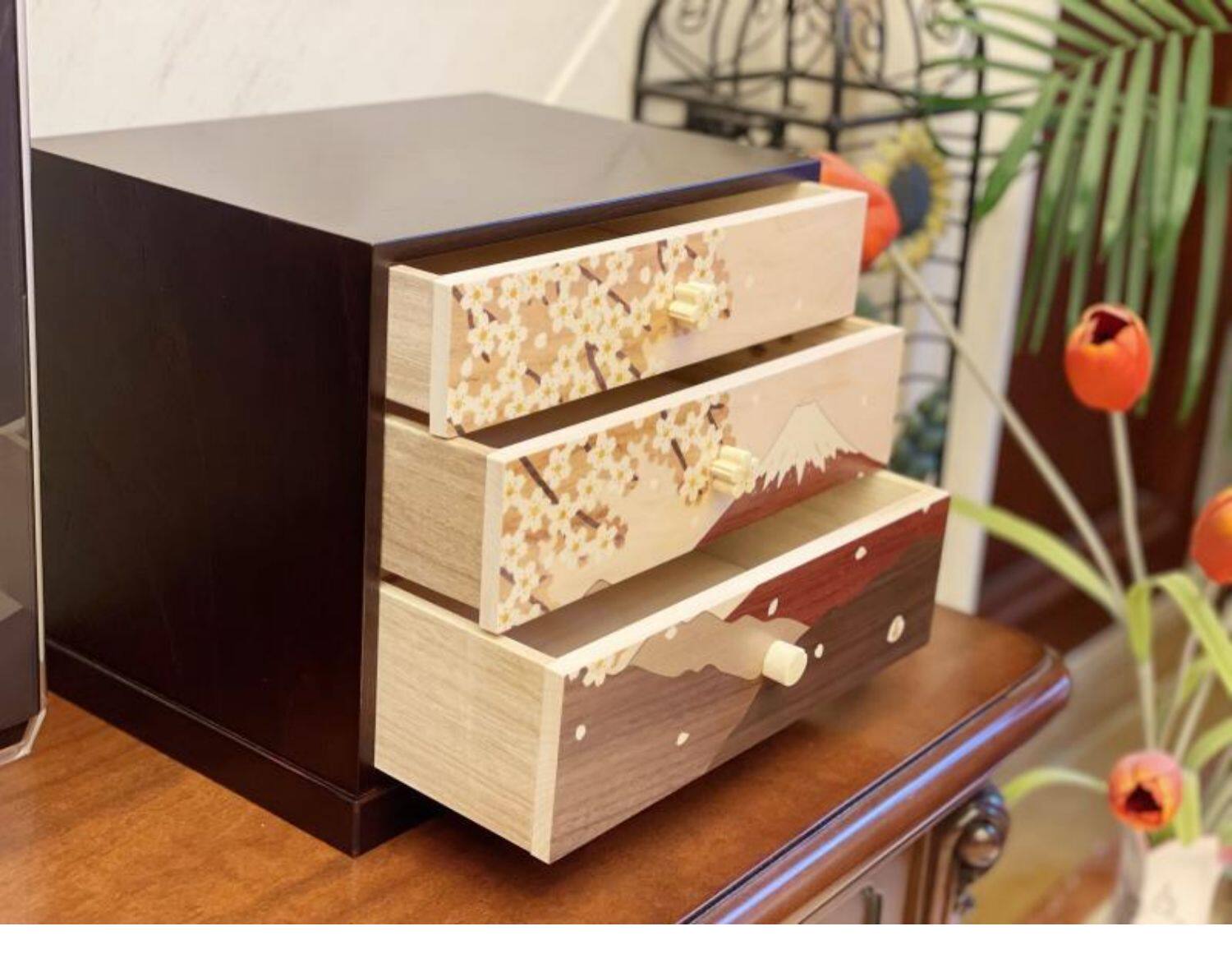 Японская инкрустация камня, ретро система хранения
