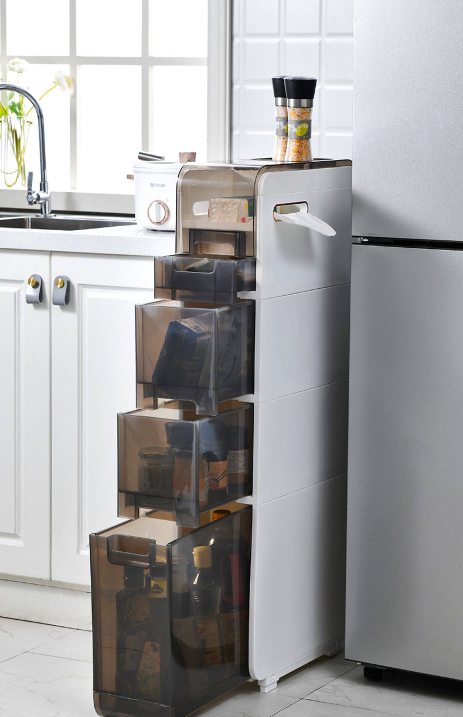 - 2022 Pearl White 4 -й этаж [41*Ширина 17,5*высота 96 см] Более толстый полосовый ролик+фиксированная нога