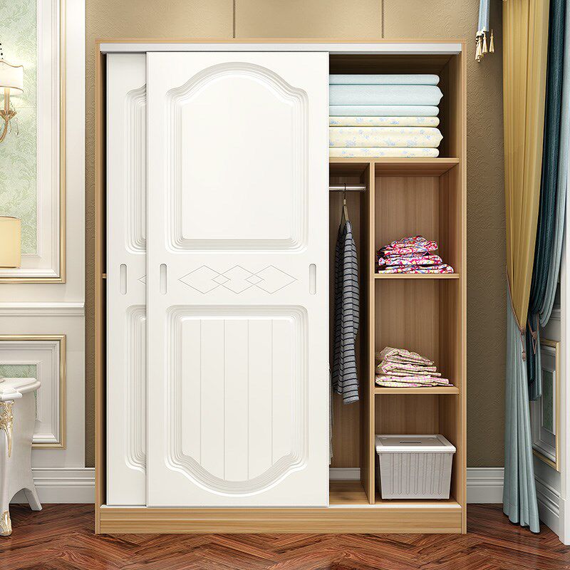 Европейский стиль гардероб сплошной древесина Простая современная экономика Ассамблея Простая гардеробная дверная спальня 2 детского гардероба