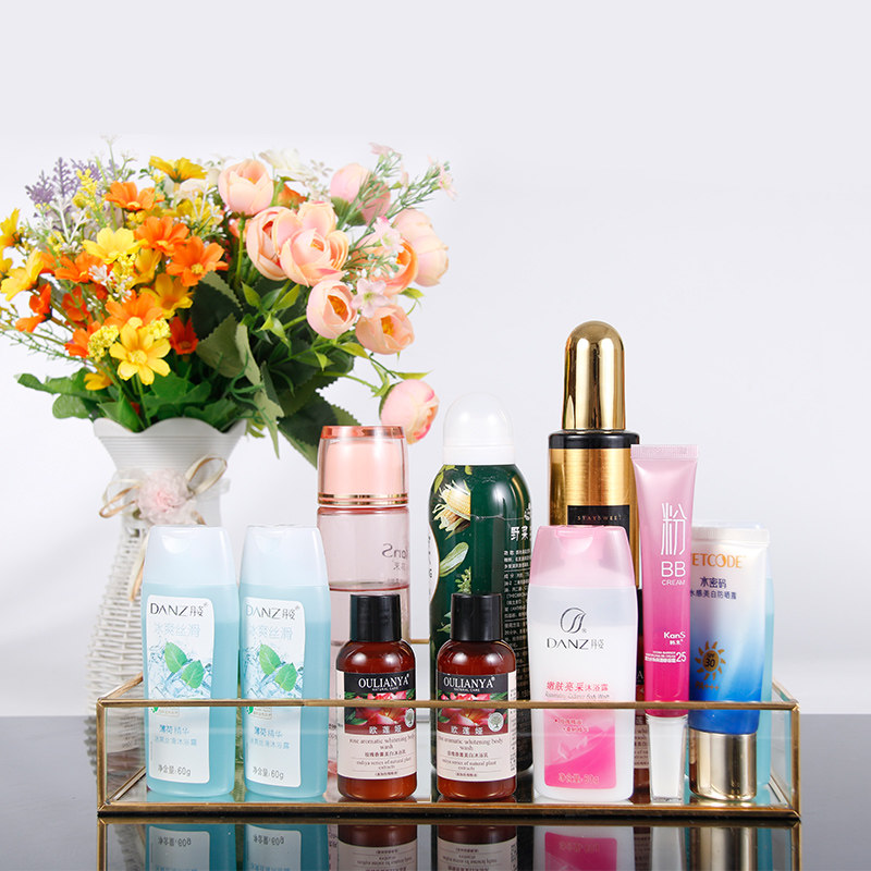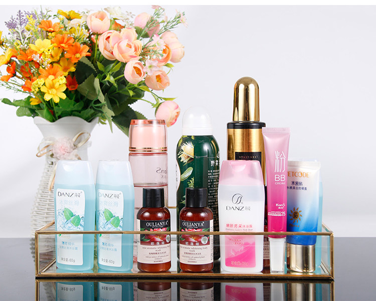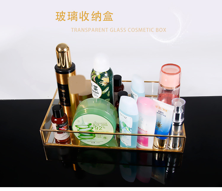 Ретро настольный хранение золотоильем из стеклянного лотка для косметического лотка для хранения