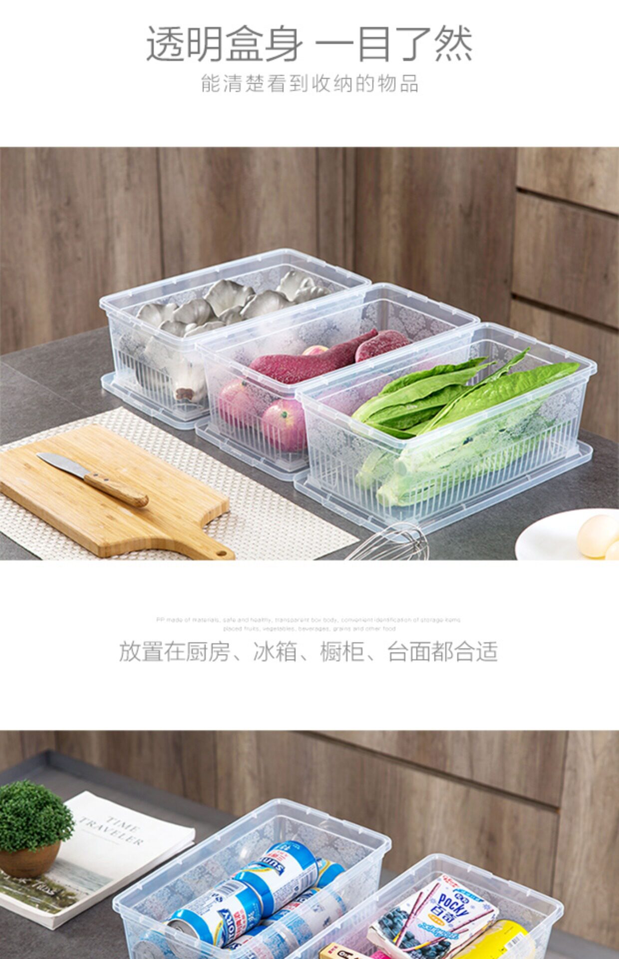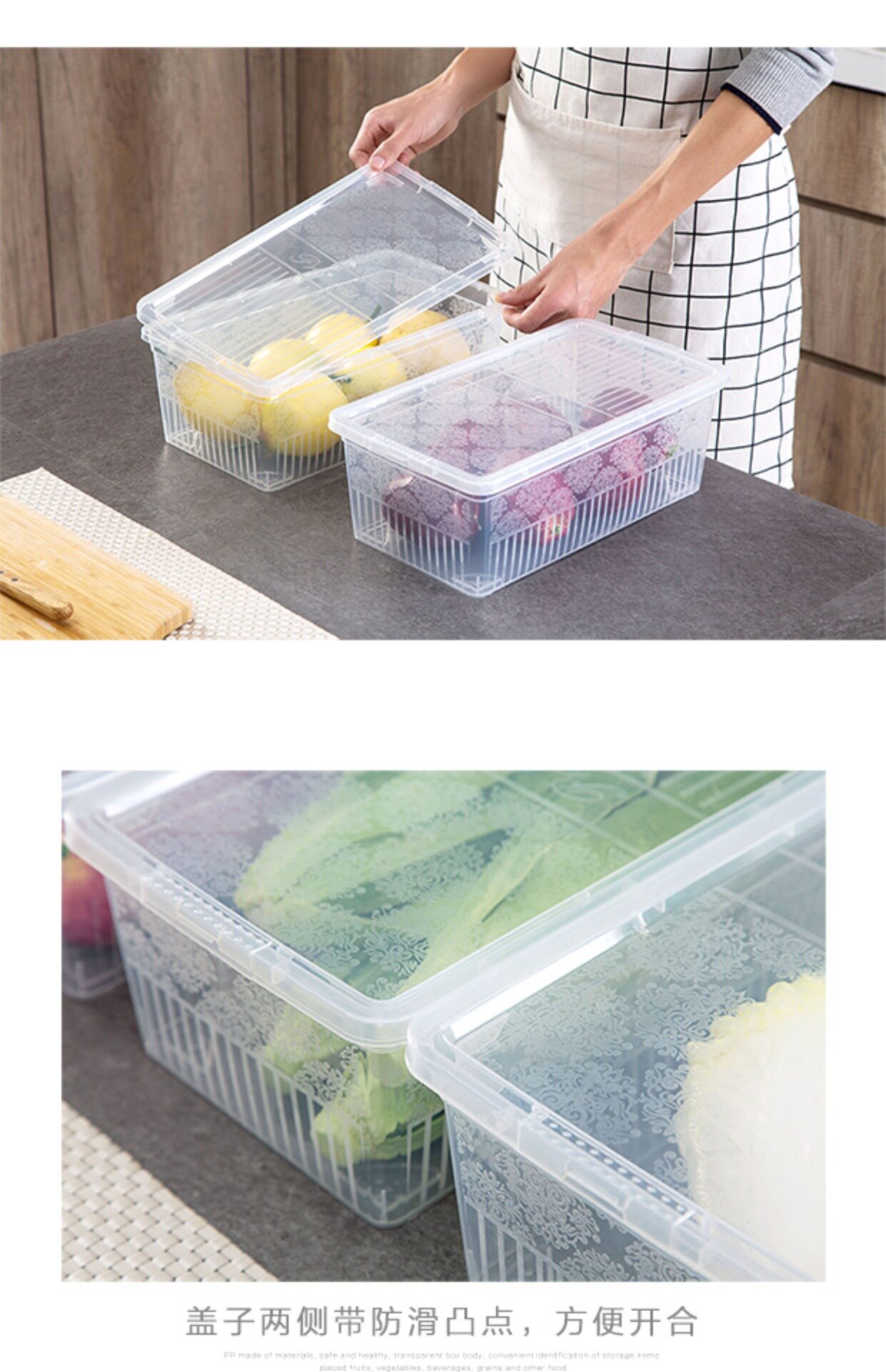 Домашний прозрачный пластиковый ящик для хранения холодильника, кухонный ящик для хранения продуктов с крышкой, большой ящик для хранения фруктов, продуктов питания