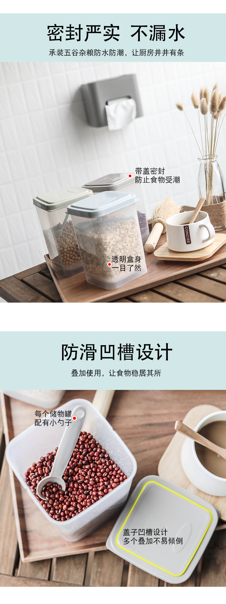 Uteki может наложить на хранение зернового хранения кухонная пластиковая танк еду для хранения продуктов питания свежую коробку с ложкой