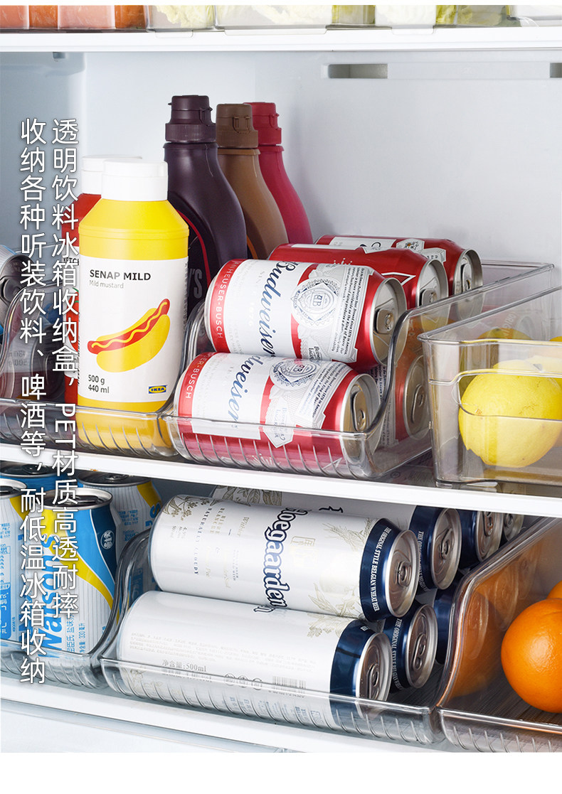 Кухня для хранения холодильника Pet прозрачные пивные напитки Coca -ylai Cans с двойным слоем стойки для хранения холодильника
