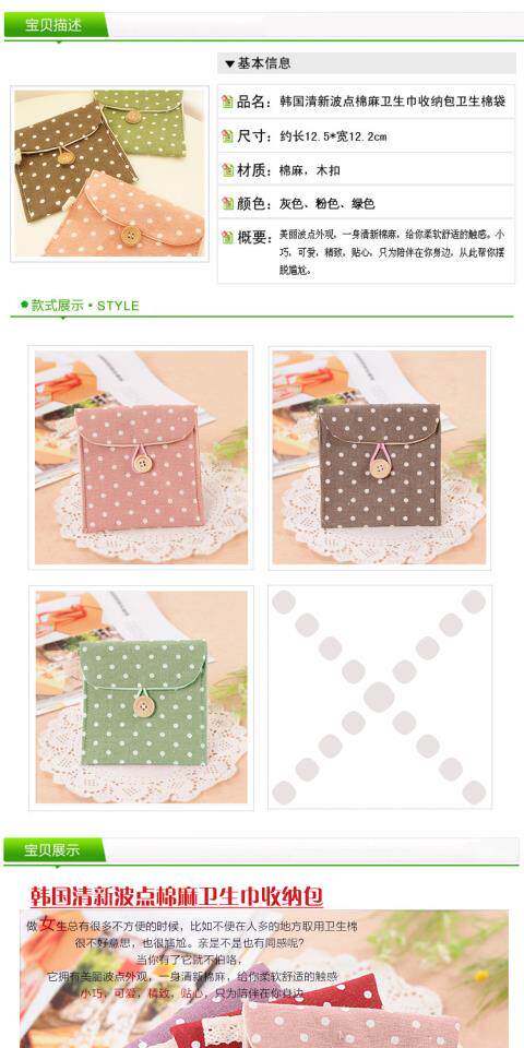 Гигиеническая прокладка, сумка-органайзер, салфетки, портативная упаковка, из хлопка и льна