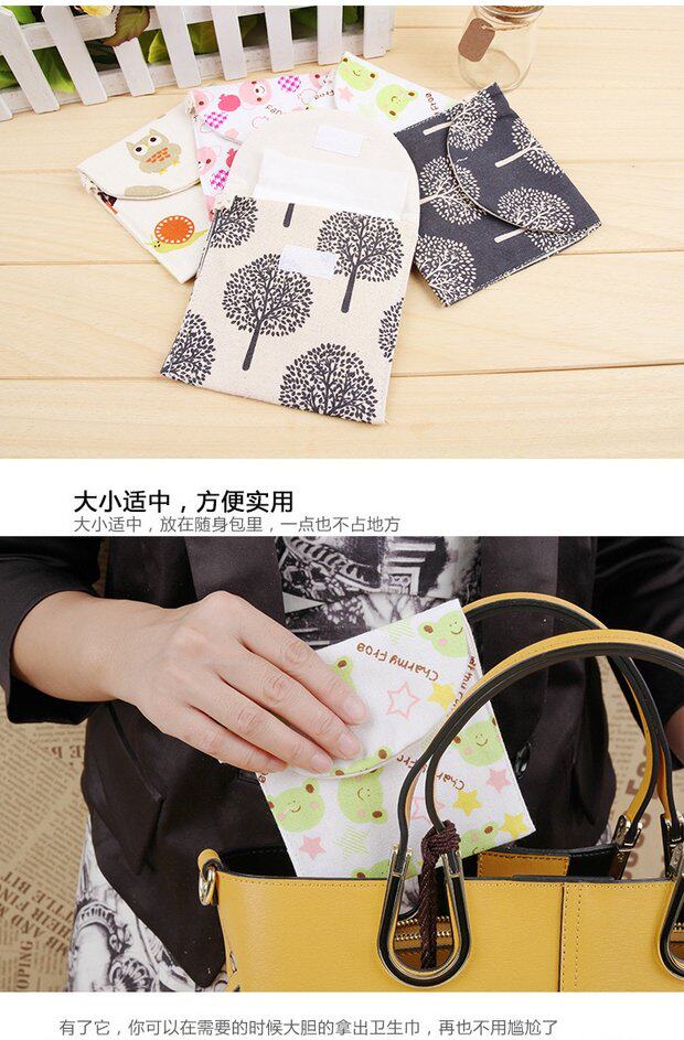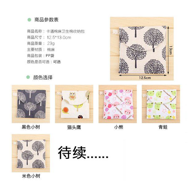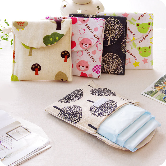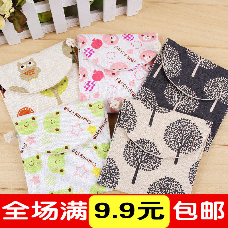 Мультяшная гигиеническая прокладка, сумка-органайзер, салфетки, косметичка, новая коллекция, из хлопка и льна
