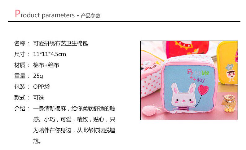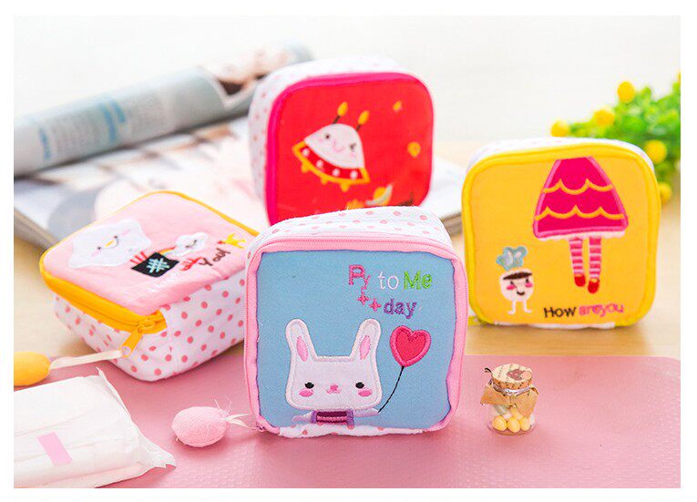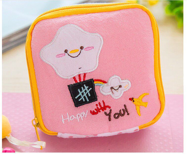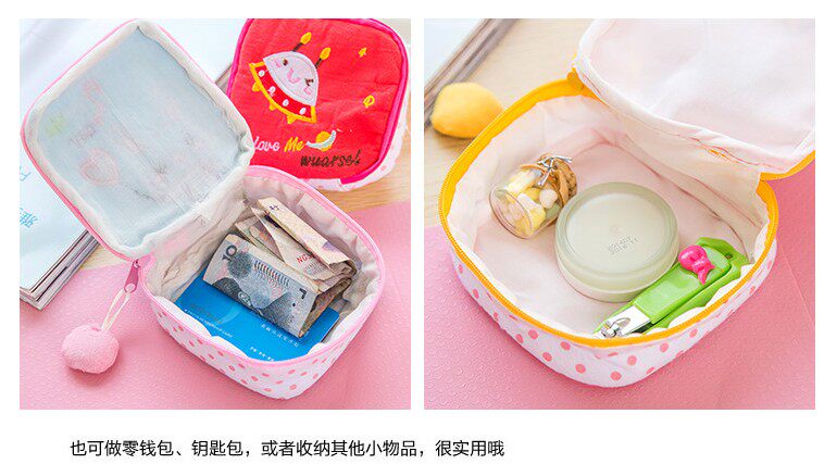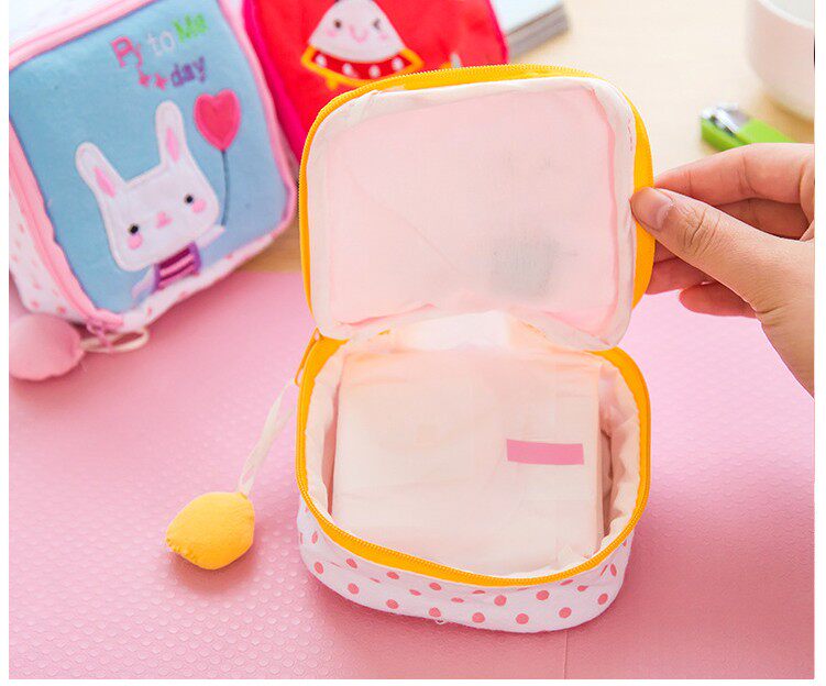 Милая гигиеническая прокладка, сумка-органайзер, вместительная и большая ткань с молнией, салфетки, Южная Корея, на молнии