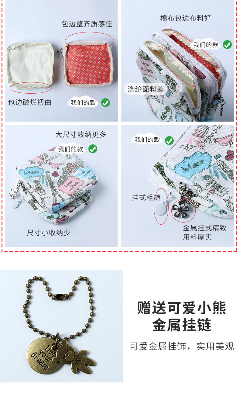 Гигиеническая прокладка, вместительная и большая милая сумка-органайзер, портативные салфетки, небольшая сумка