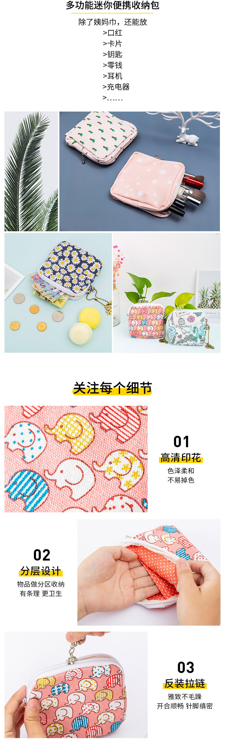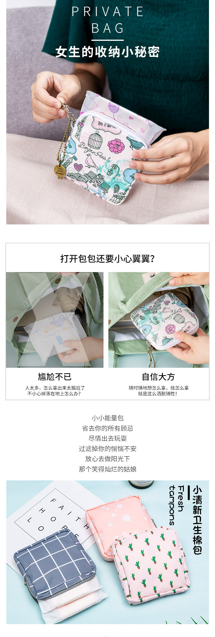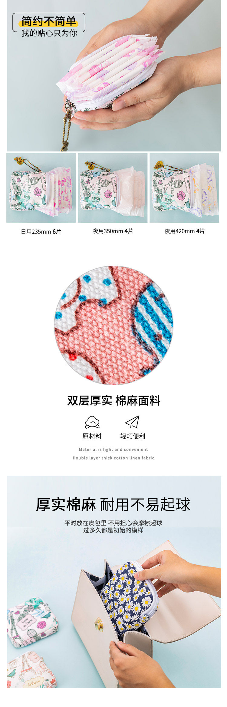 Гигиеническая прокладка, сумка-органайзер, портативная помада, небольшая сумка, салфетки
