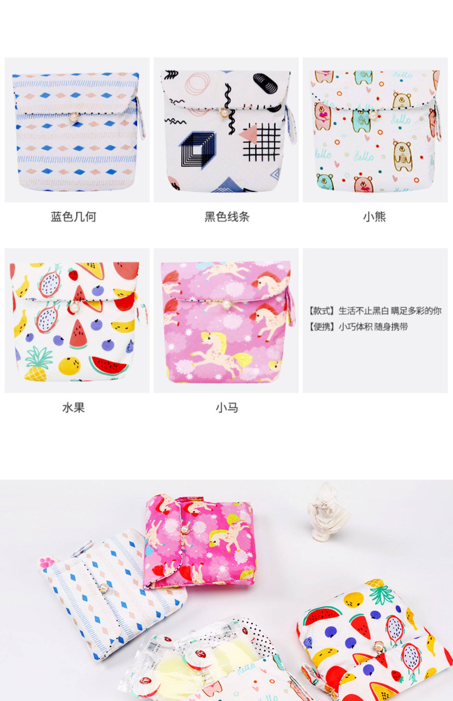 Гигиеническая прокладка, портативная сумка-органайзер, вместительные и большые салфетки, небольшая сумка