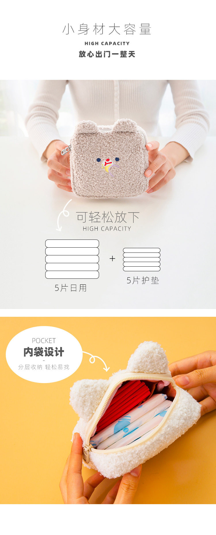 Плюшевый мультяшный кролик, гигиеническая прокладка, сумка-органайзер, с вышивкой, кот, с медвежатами