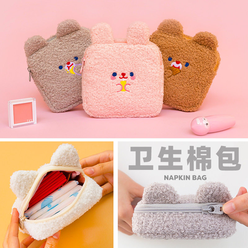 Плюшевый мультяшный кролик, гигиеническая прокладка, сумка-органайзер, с вышивкой, кот, с медвежатами
