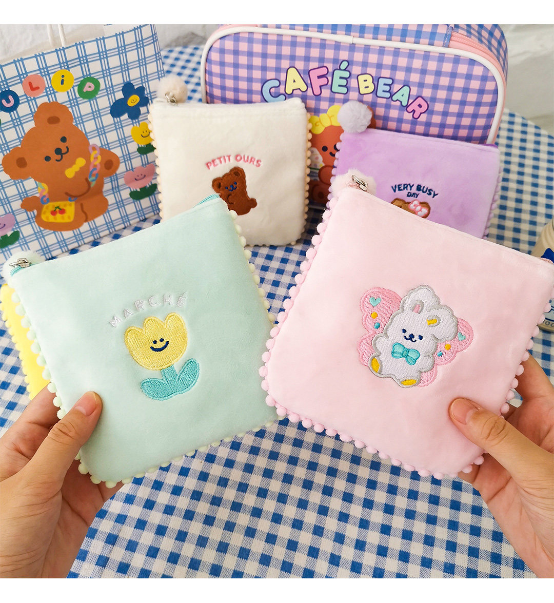 Милая гигиеническая прокладка, сумка-органайзер, салфетки, шарф, маленькая портативная небольшая сумка, новая коллекция, с медвежатами