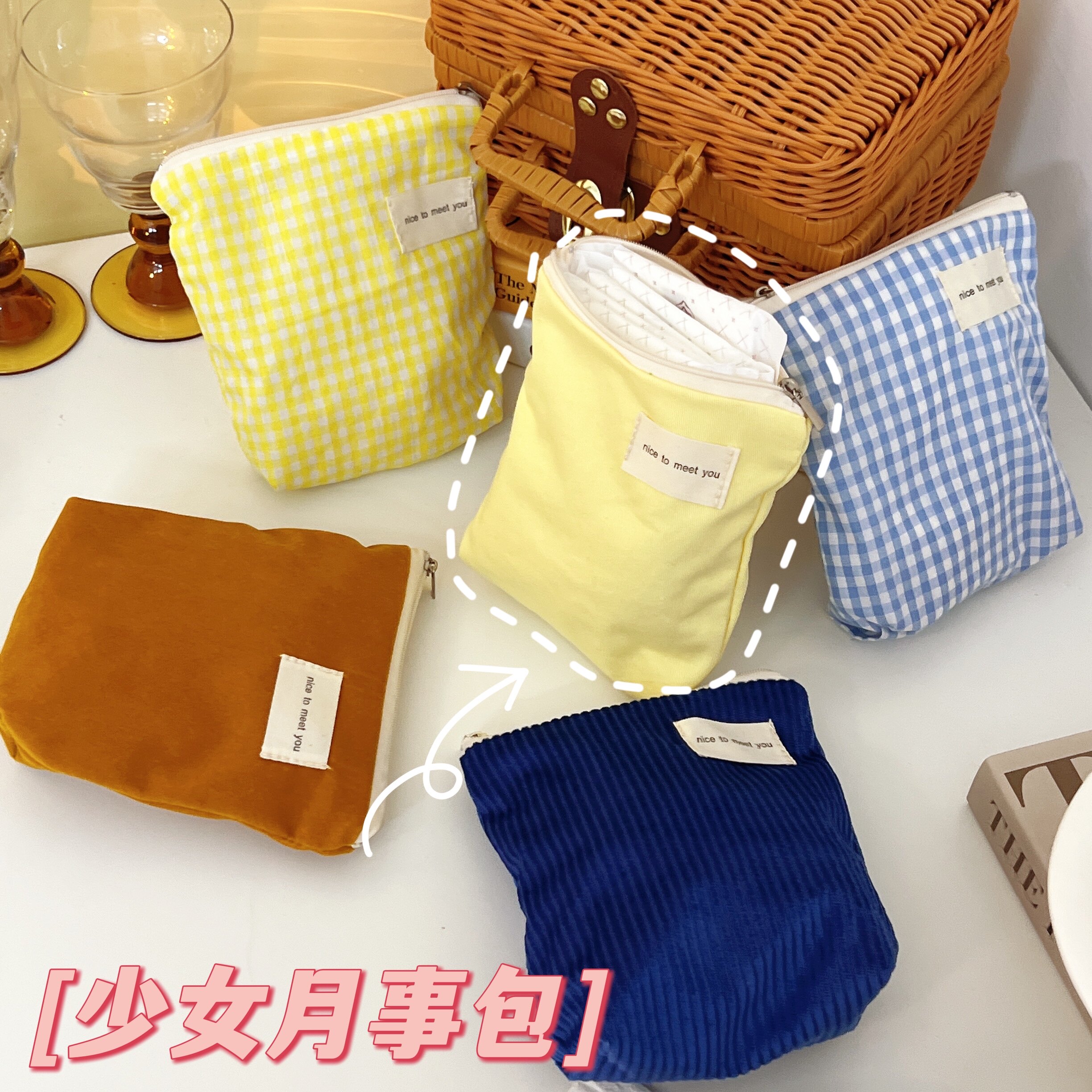 Японская школьная юбка с молнией, гигиеническая прокладка, портативная переносная маленькая сумка-органайзер, маленький кошелек, тканевый мешок, сумка