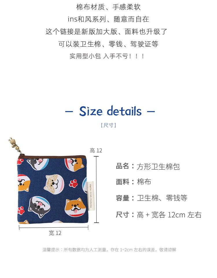 Японская сумка через плечо, квадратная гигиеническая прокладка, сумка-органайзер, увеличенная толщина