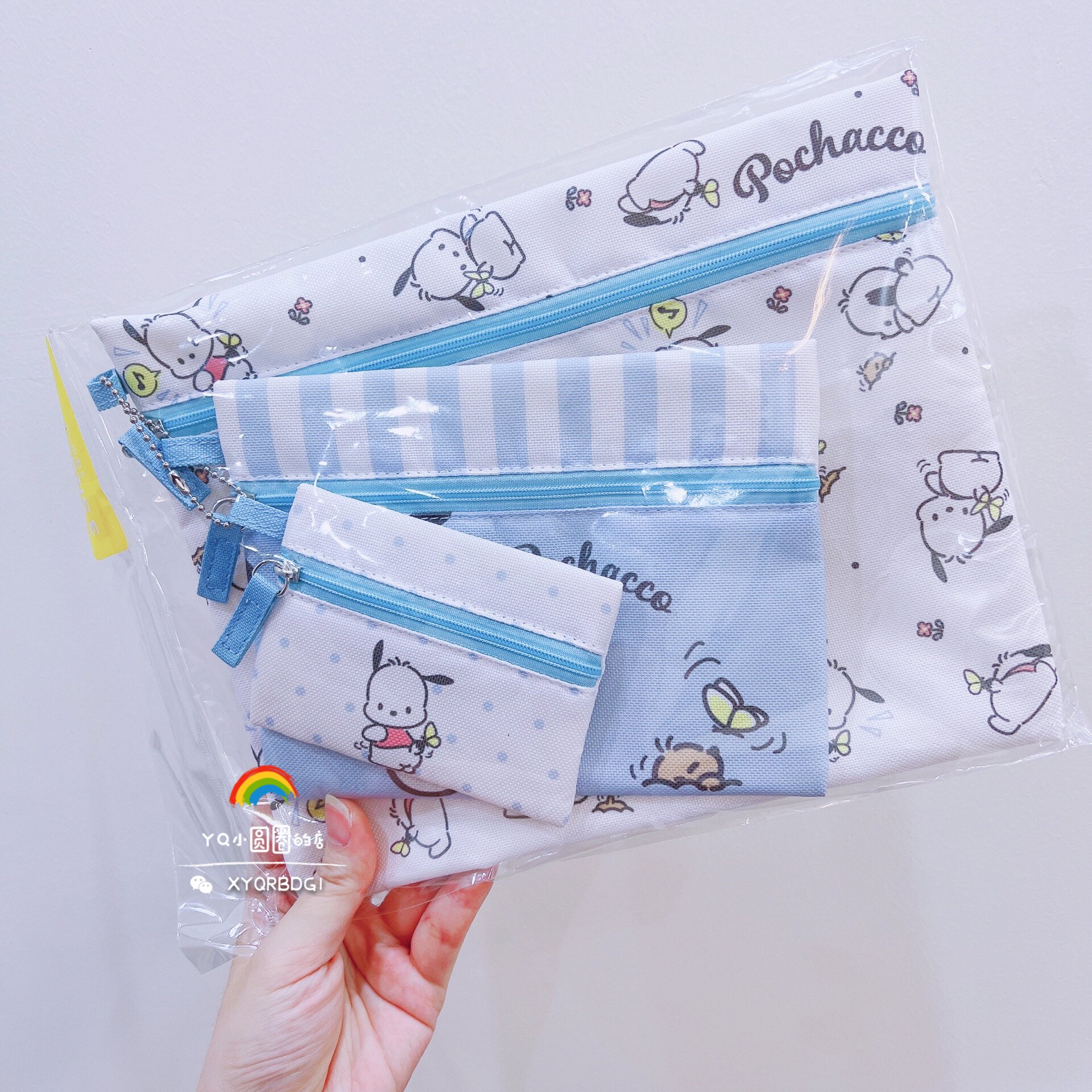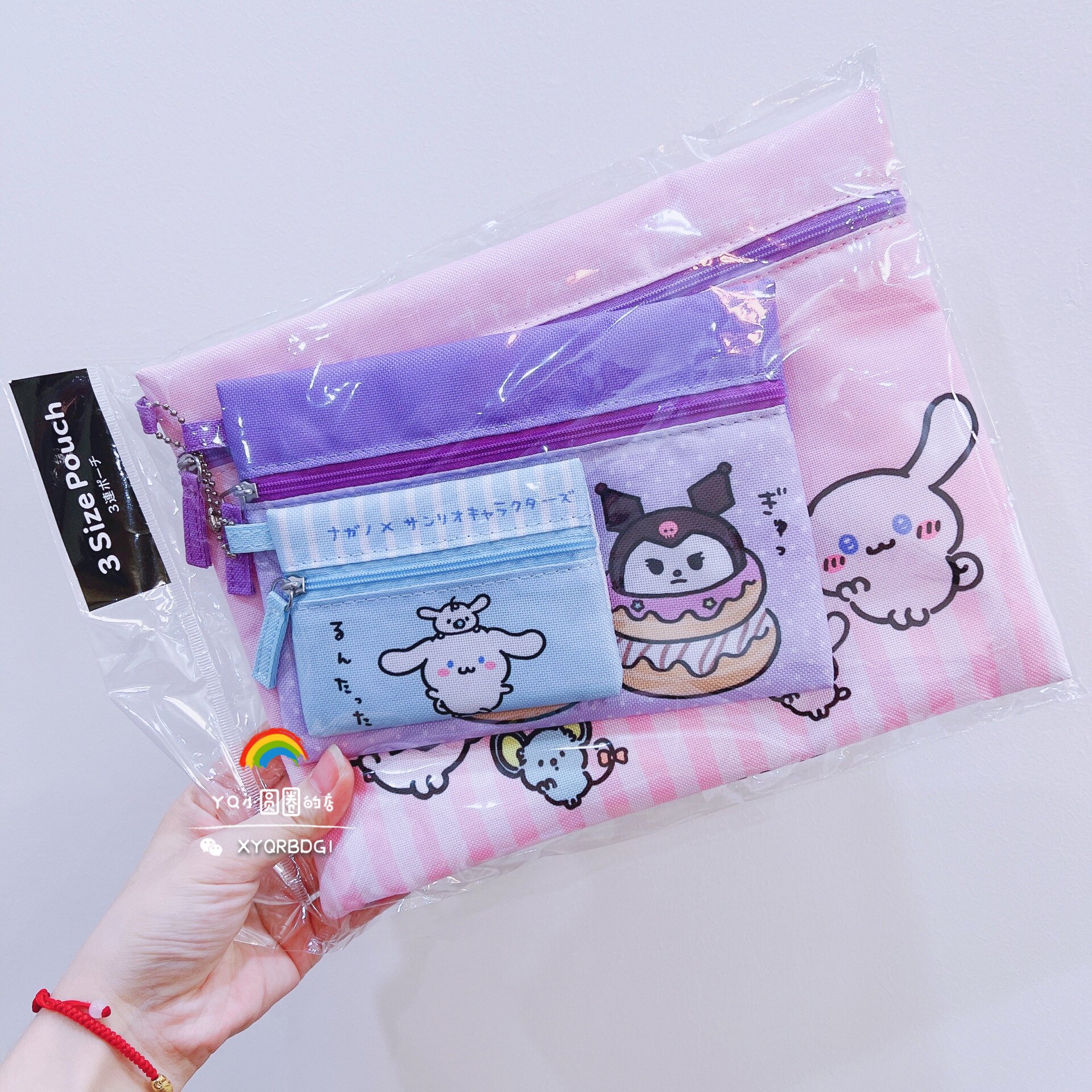 Spot Free Shipping Japan Sanrio Sanli Kuromi Yuma Yukou Dog Dog Melati Canvas Трехрепетная сумка для хранения сумки подряд