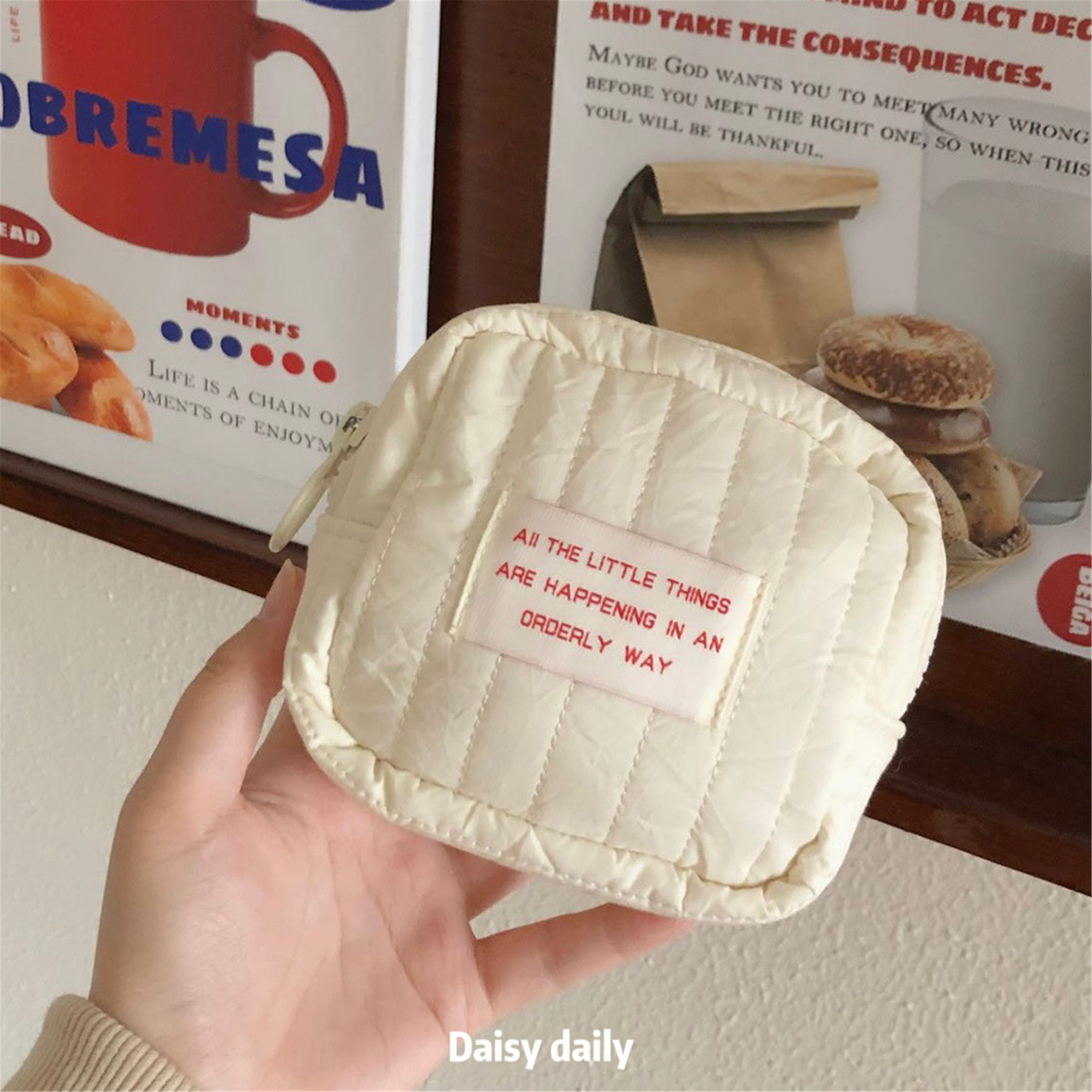Милая маленькая косметичка, брендовая сумка с петлей на руку, портативная стеганая помада для путешествий, сумка-органайзер, Южная Корея
