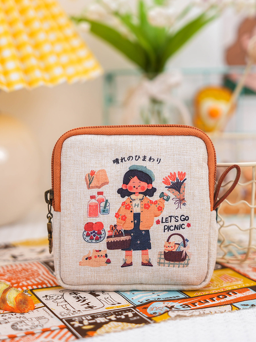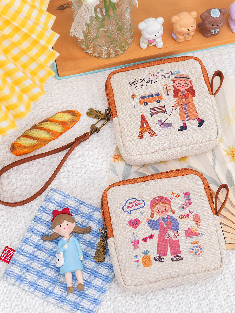 Оригинальная японская ткань, гигиеническая прокладка, мультяшная сумка-органайзер, сумка, портативные салфетки, из хлопка и льна