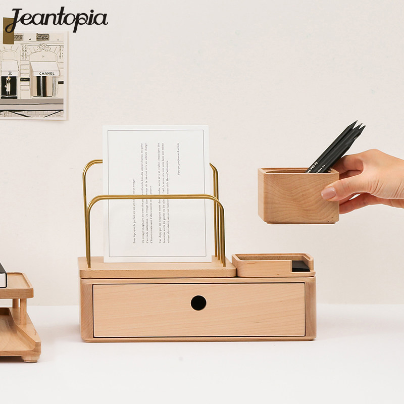 Универсальная система хранения из натурального дерева, деревянные канцтовары, коробка для хранения
