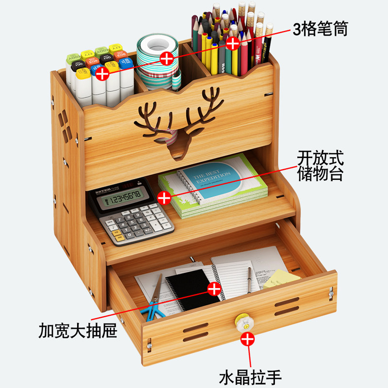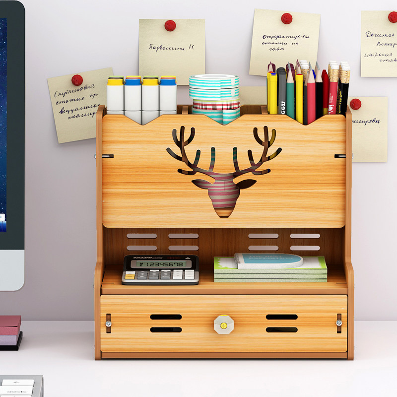 Деревянный универсальный держатель для ручек, милая коробка для хранения для школьников, система хранения
