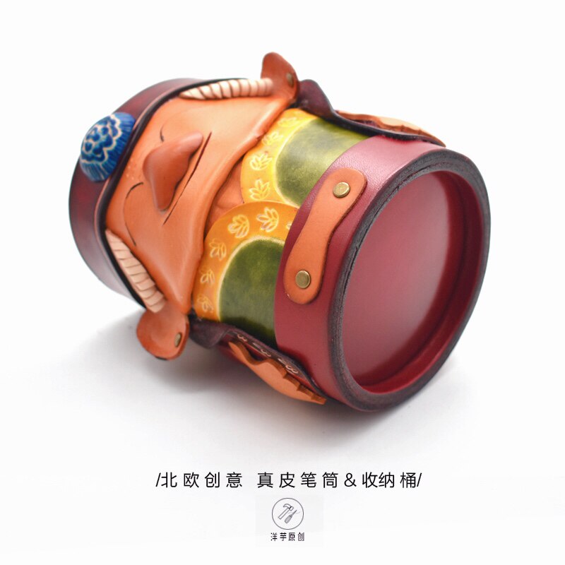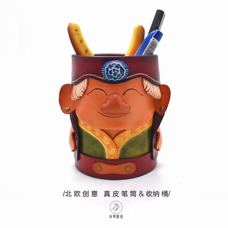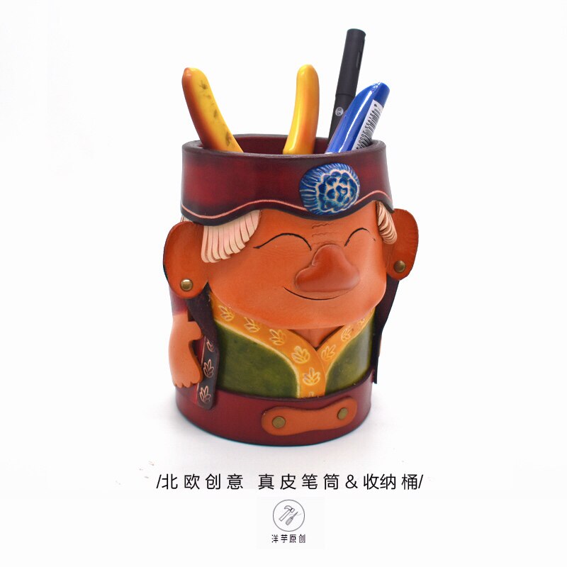 Подставка для ручек из натуральной кожи!Скандинавское ведро из воловьей кожи, креативные украшения для офиса с героями мультфильмов, товары для дома, хранение канцелярских принадлежностей