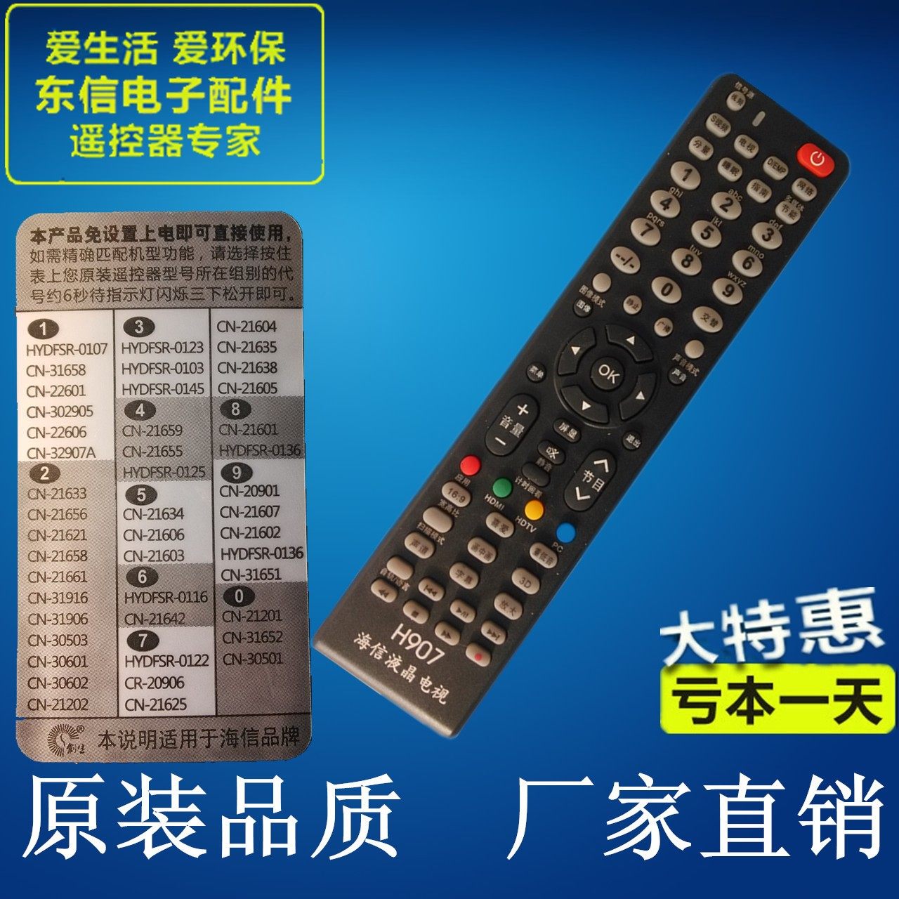 Hisense LCD -телевизор дистанционного управления Hisense ЖК -телевизор Общие настройки напрямую используют H907