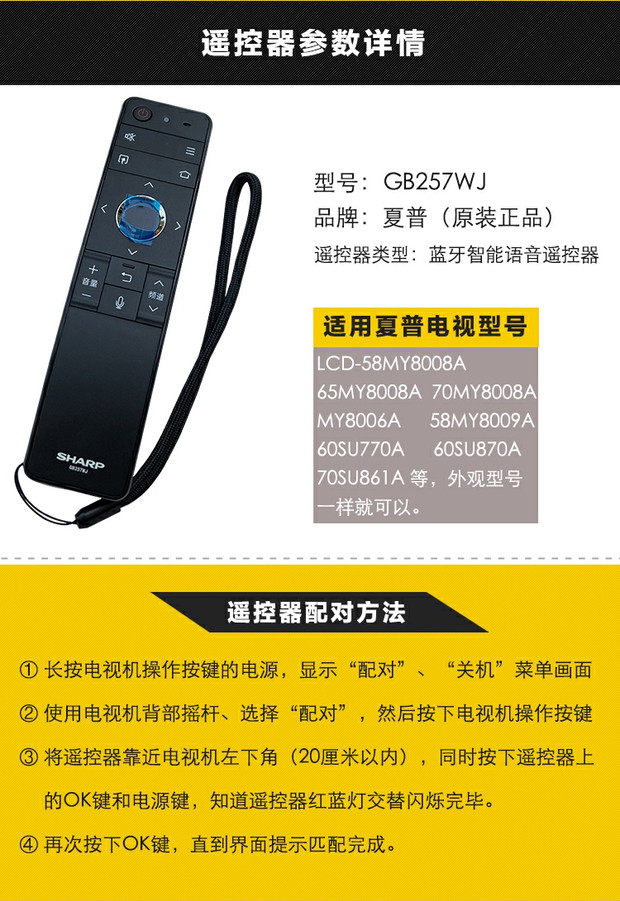 Оригинальный Sharp TV LCD-60SU770A SU870A 70SU861A TX8009 MY73 Пульт дистанционного управления