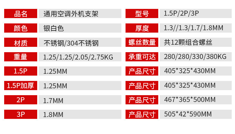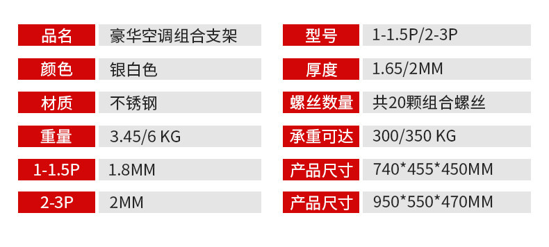 | Цвет: | 1-1,5p [толстая нержавеющая сталь]+обновление качества+толщина 1,5 мм+несущая нагрузка 280 кг, 2p [толстая нержавеющая сталь]+обновление качества+толщина 1,8 мм+подшипник 330 кг, 3p [толстая нержавеющая сталь]+обновление качества+толщина 2 мм+подшипник 380 кг, [304 нержавеющая сталь] 1-1,5p +утолщен 1,8 мм +несущий нагрузку 300 кг, [304 из нержавеющей стали] 2p +толщина 1,8 мм +нагрузка -носивка 350 кг, [304 из нержавеющей стали] 3p +толщина 2 мм +нагрузка -носивка 400 кг, 1-1,5 стерео [304 нержавеющая сталь] толщина 1,8 мм+несущая нагрузка 300 кг, 2-3P стерео [304 нержавеющая сталь] толстая 2 мм+несущая нагрузка 400 кг, Установленные винтовые аксессуары из нержавеющей стали [вы можете связаться с обслуживанием клиентов] |