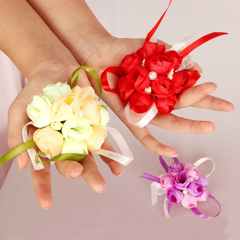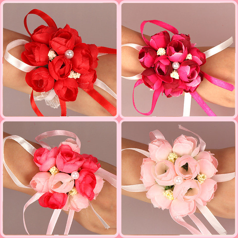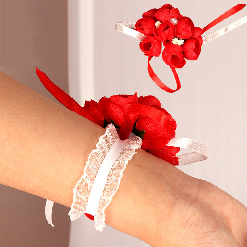 Браслет, корейский цветок на запястье для невесты, в цветочек, для подружки невесты