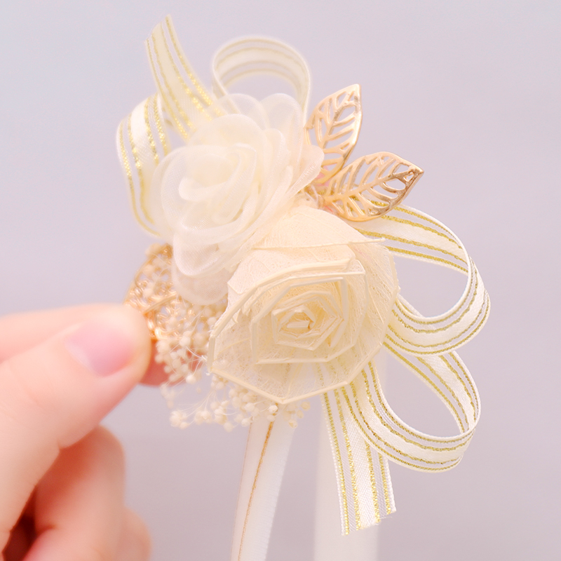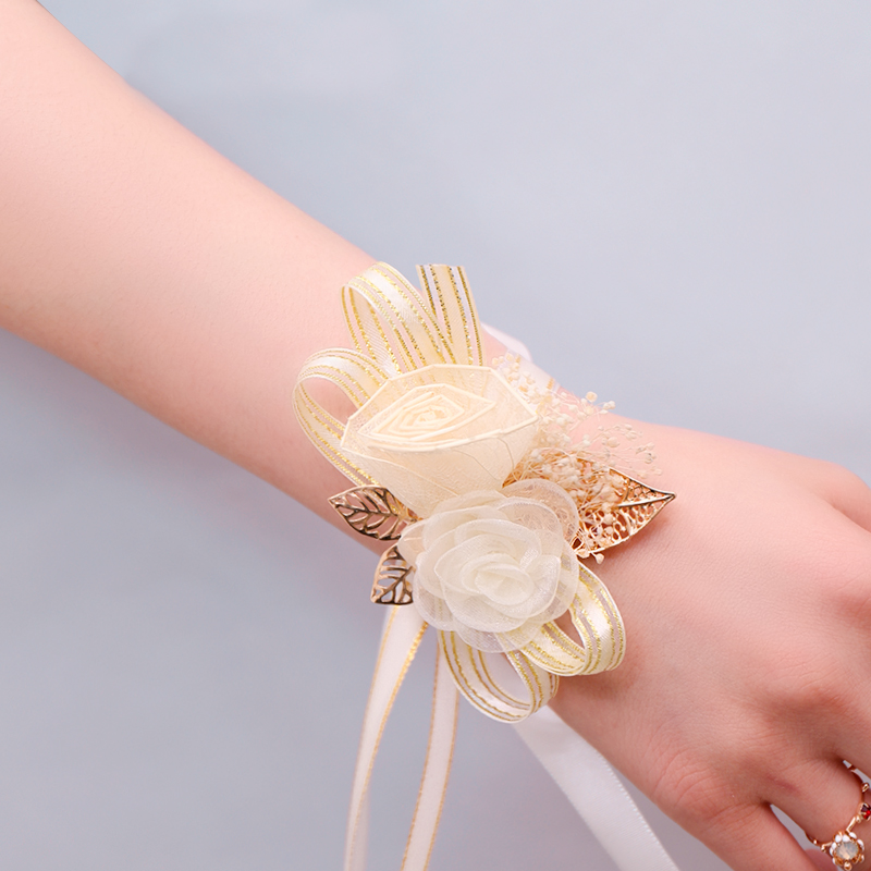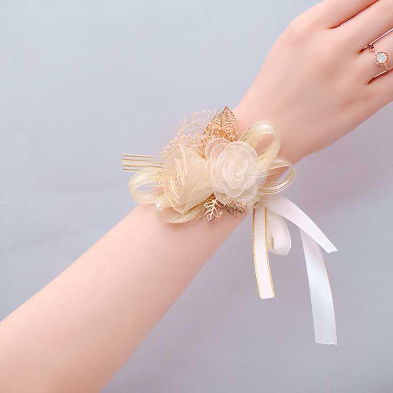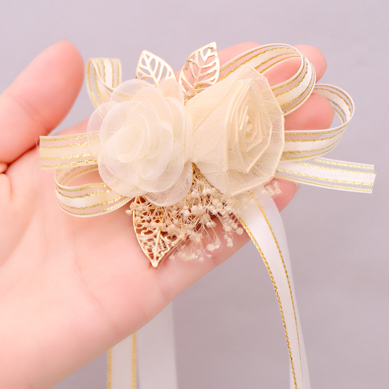 Цветок на запястье, корейское золотое платье подружки невесты для невесты на лацкан, для подружки невесты