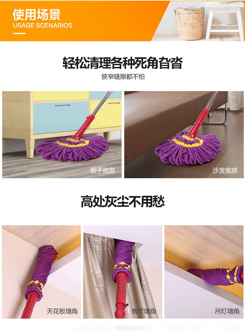 好媳妇 Self -Twisted Water Mop, вращение от руки, от руки, сухой и влажной, старой модные обычные ленивые люди сжимают хлопок