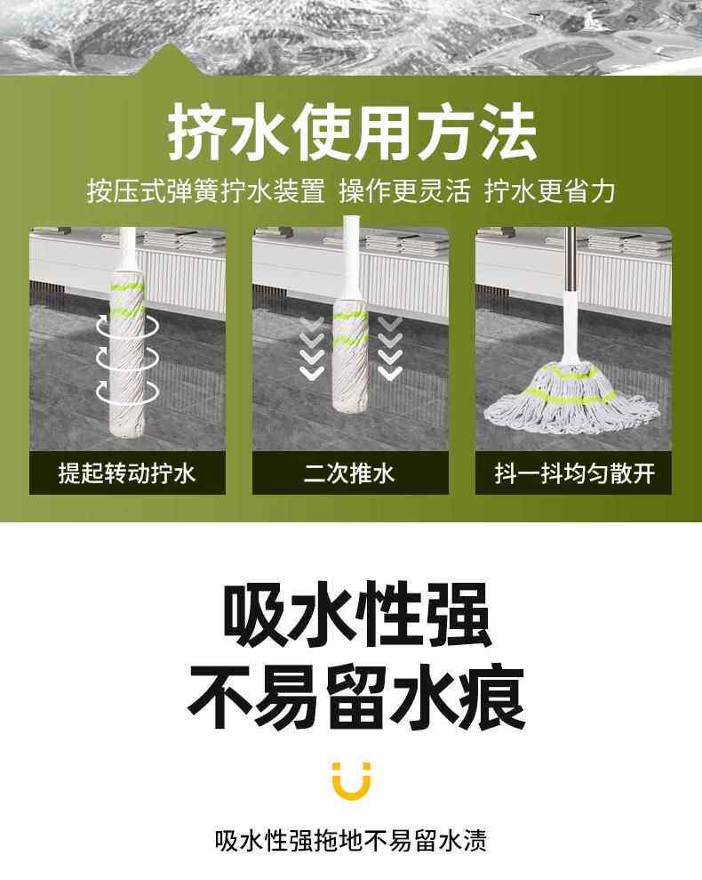 Самоотжимающаяся водяная швабра, не требующая ручной стирки. Новая бытовая швабра 2024 года, самоотжимающаяся, сухая вращающаяся старомодная швабра, швабра для пола.