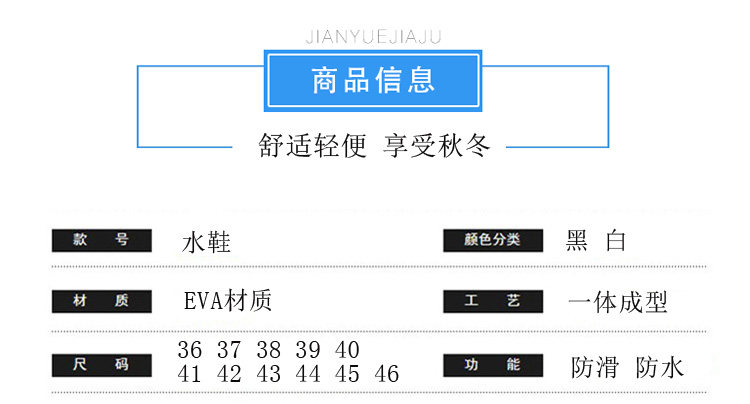 | Цвет: | Eva Water Shoes White (одиночные ботинки), Eva Water Boots Black (одиночные сапоги), Eva Water Boots White (хлопковые сапоги), Eva Water Boots Black (хлопковые сапоги), Ева китайская фиолетовая (хлопковые ботинки) двойная обувь, Ева Чжунбанг черные (хлопчатобумажные сапоги) двойные туфли |