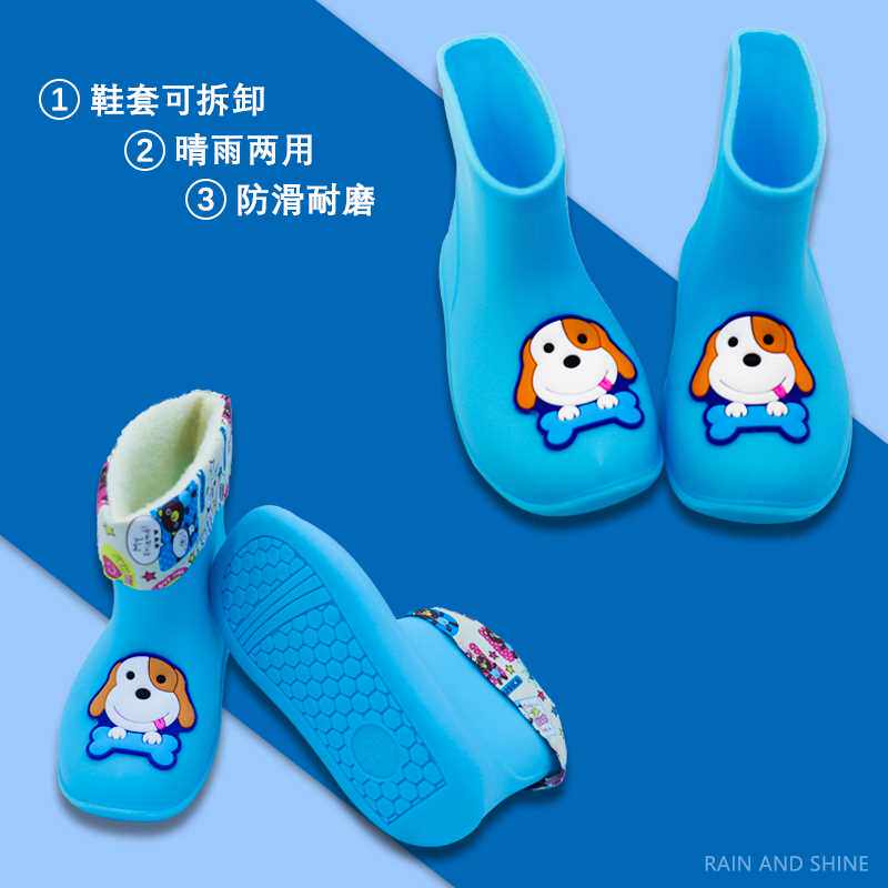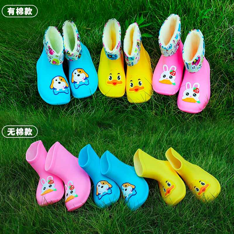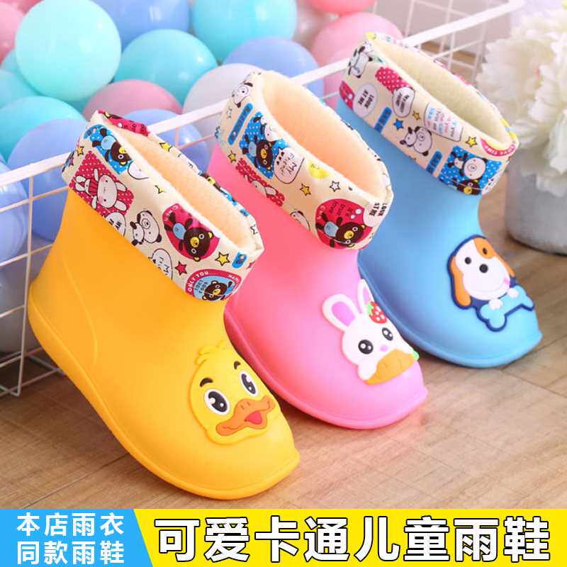Детские модные резиновые сапоги, теплые и с высоким содержанием хлопка, съемные противоскользящие водонепроницаемые дождевые сапоги для мужчин и женщин, милые мультяшные водные туфли, детская средняя трубка