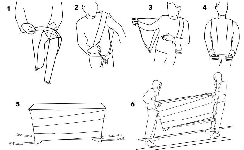 Вспомогательный ремень длиной 3 метра регулируется по длине и подходит для любой мебели.