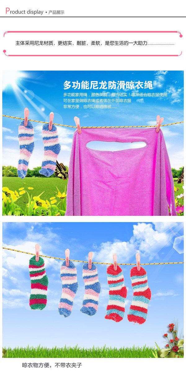 Длинная нескользящая прочная сушилка, ветрозащитная нейлоновая бельевая веревка