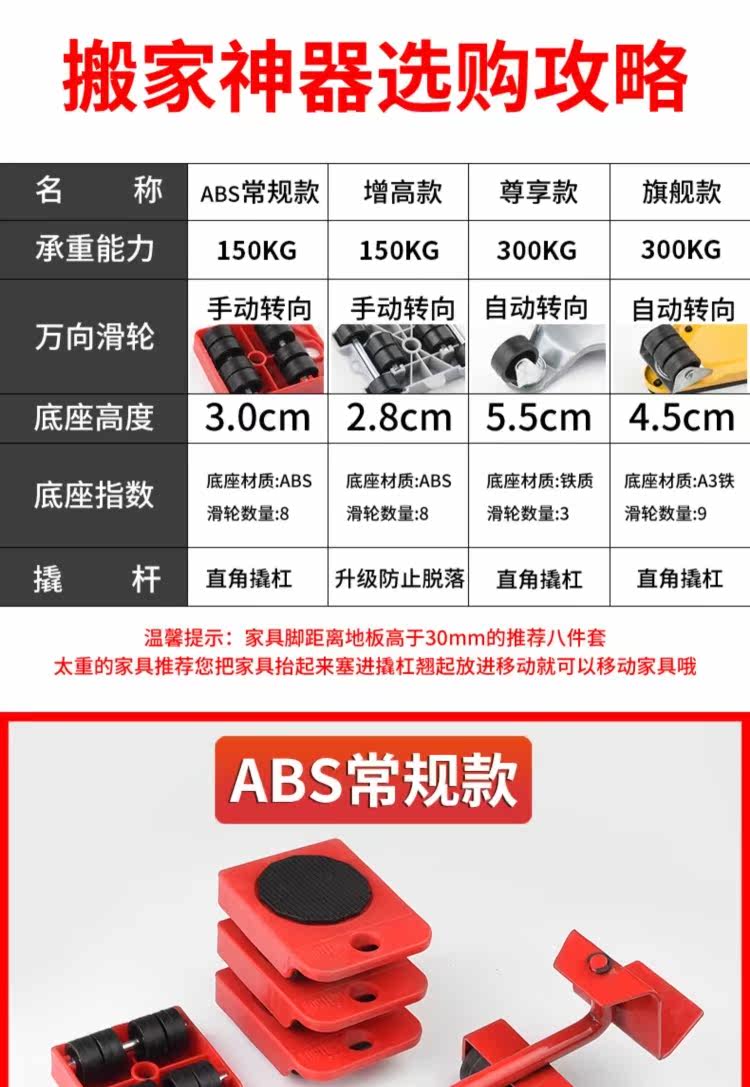 Перемещение тяжелого объективного артефакта Перемещение универсальной колесной мебели многофункциональное инструмент Мобильный шкив для шкива, чтобы двигаться кровать для дома